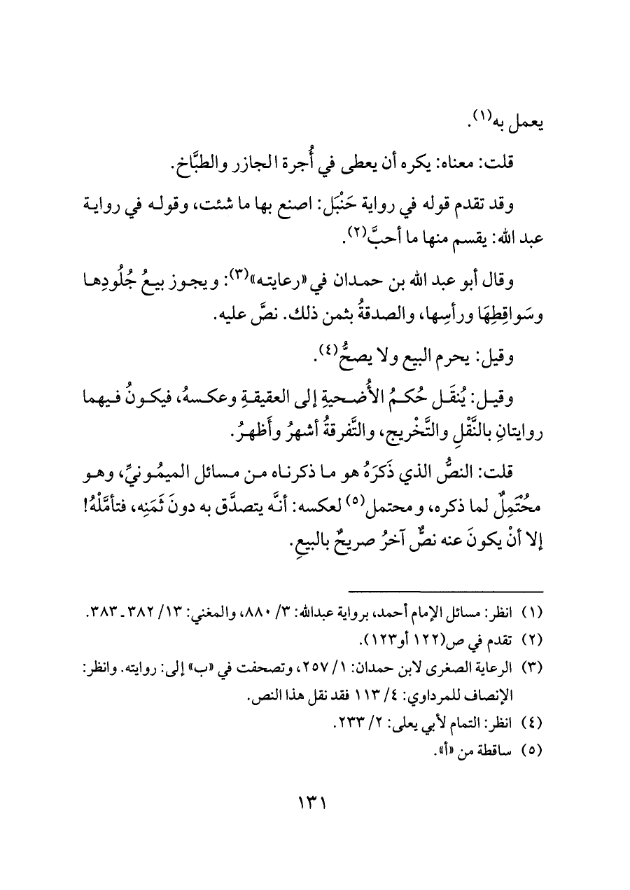 (¬٣) الرعاية الصغرى لابن حمدان: ١/ ٢٥٧، وتصحفت في "ب" إلى: روايته. وانظر: الإنصاف للمرداوي: ٤/ ١١٣ فقد نقل هذا النص.