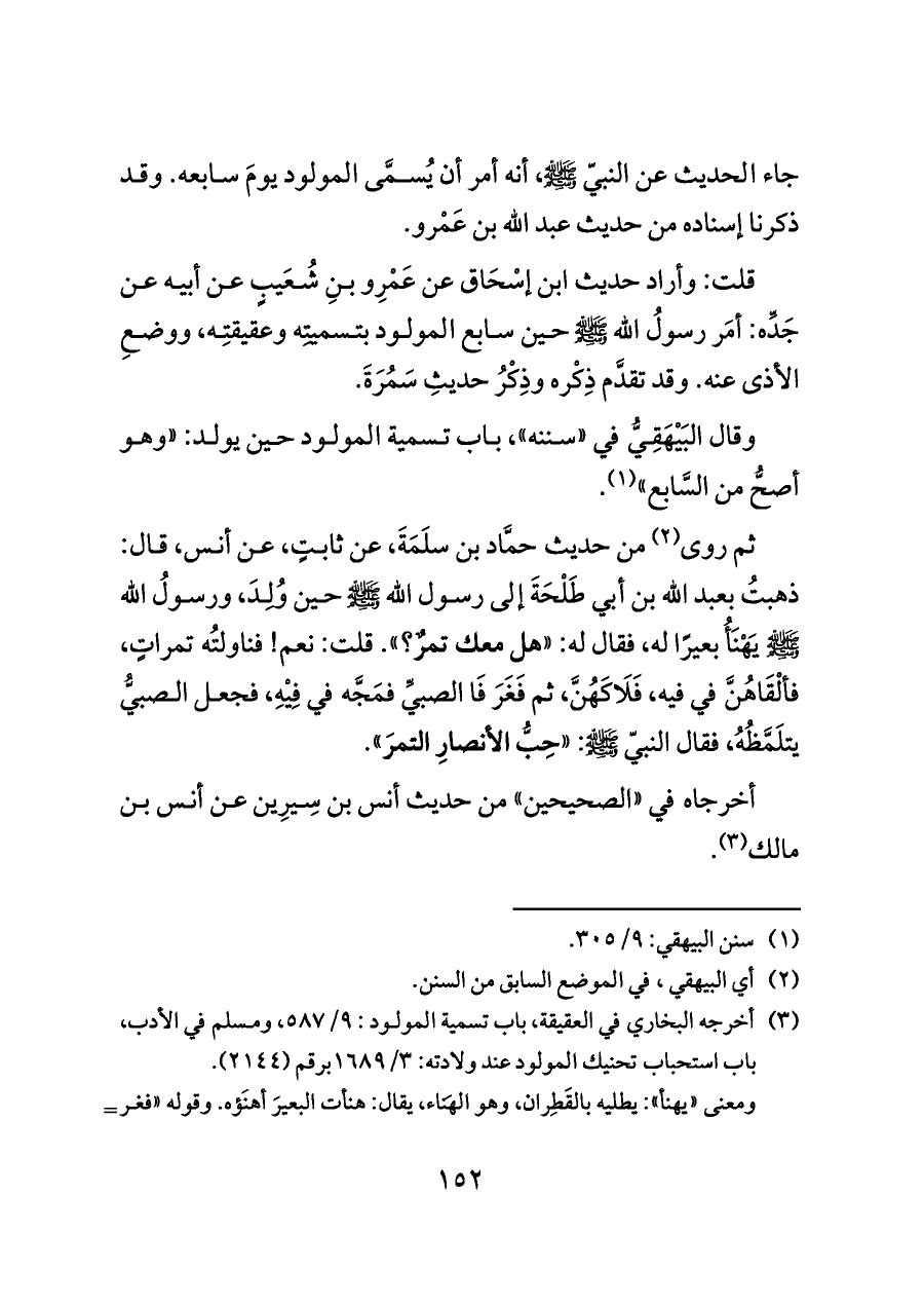 (¬٣) أخرجه البخاري في العقيقة، باب تسمية المولود: ٩/ ٥٨٧، ومسلم في الأدب، باب استحباب تحنيك المولود عند ولادته: ٣/ ١٦٨٩ برقم (٢١٤٤).