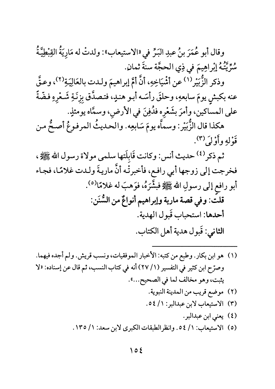قلت: وفي قصة مارية وإبراهيم أنواعٌ من السُّنَن: