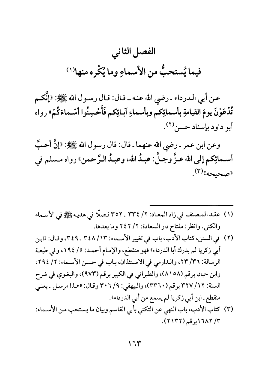 (¬١) عقد المصنف في زاد المعاد: ٢/ ٣٣٤ ـ ٣٥٢ فصلًا في هديه - صلى الله عليه وسلم - في الأسماء والكنى. وانظر: مفتاح دار السعادة: ٢/ ٢٤٢ وما بعدها.
