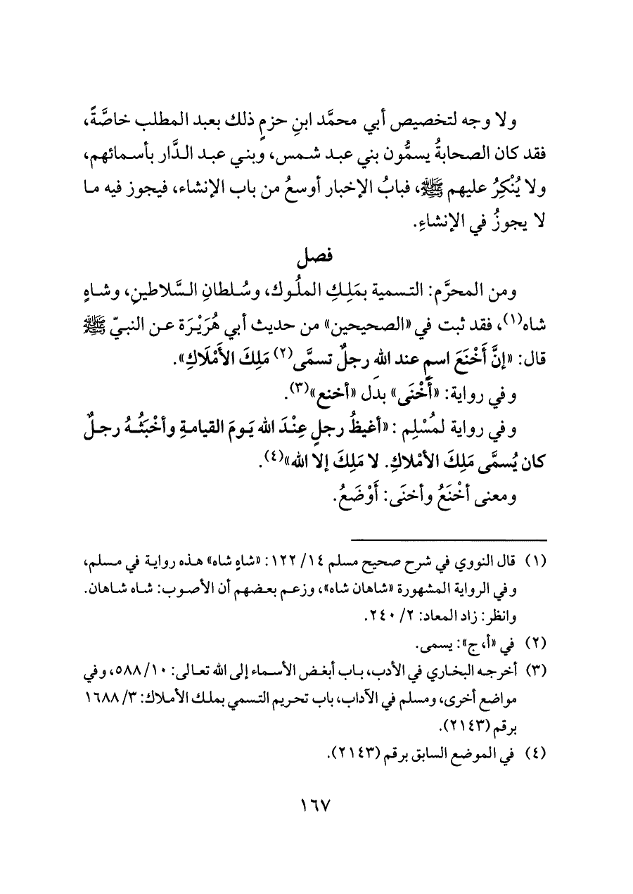 (¬٣) أخرجه البخاري في الأدب، باب أبغض الأسماء إلى الله تعالى: ١٠/ ٥٨٨، وفي مواضع أخرى، ومسلم في الآداب، باب تحريم التسمي بملك الأملاك: ٣/ ١٦٨٨ برقم (٢١٤٣).