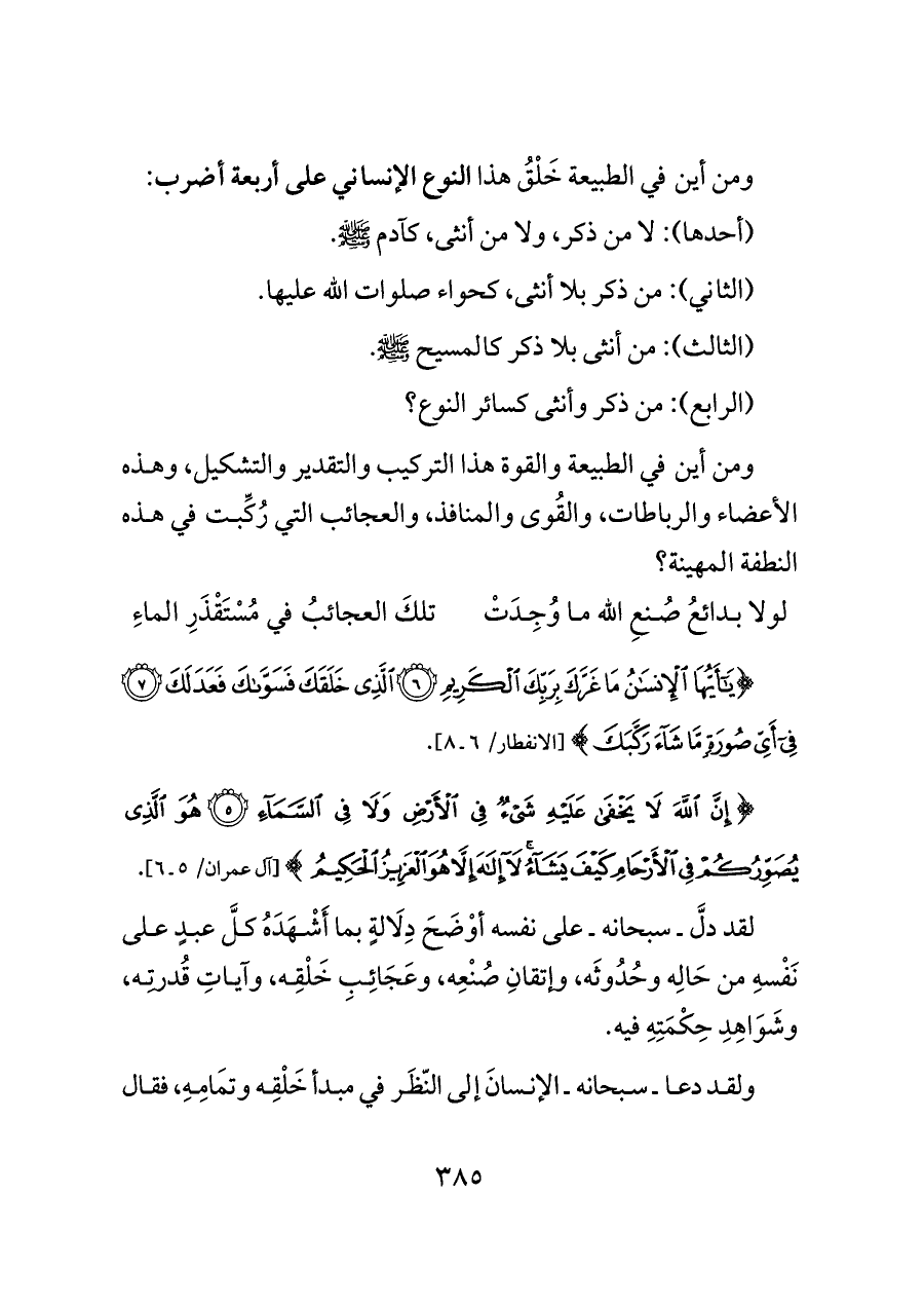 ومن أين في الطبيعة خَلْقُ هذا النوع الإنساني على أربعة أضرب: