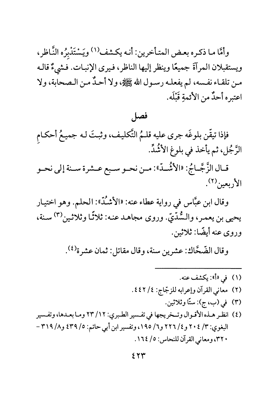 وقال ابن عبَّاس في رواية عطاء عنه: «الأشُدّ»: الحلم. وهو اختيار يحيى بن يعمر، والسُّدّيّ. وروى مجاهد عنه: ثلاثًا وثلاثين (¬٣) سنة، وروى عنه أيضًا: ثلاثين.