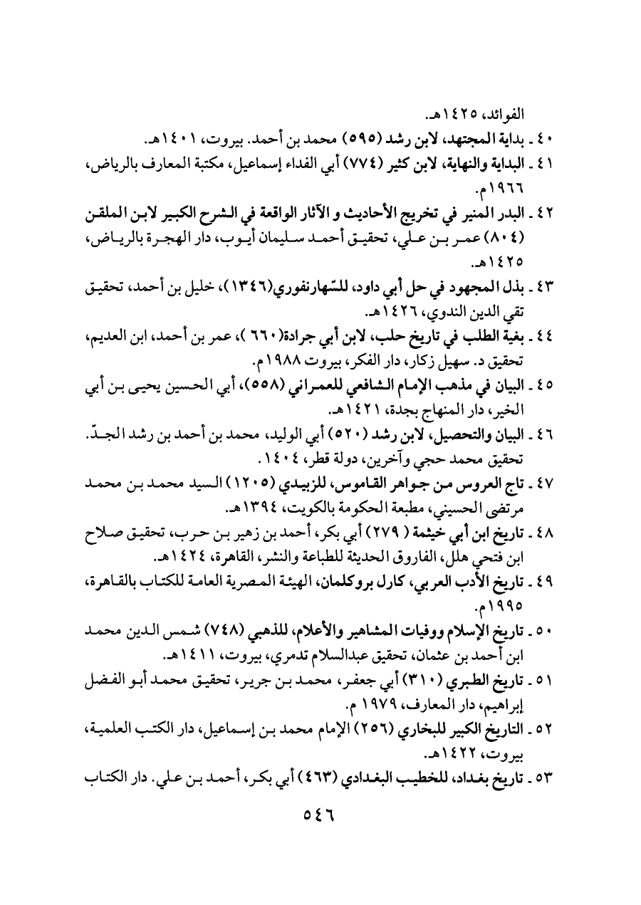 ٤٩ - تاريخ الأدب العربي، كارل بروكلمان، الهيئة المصرية العامة للكتاب بالقاهرة، ١٩٩٥ م.