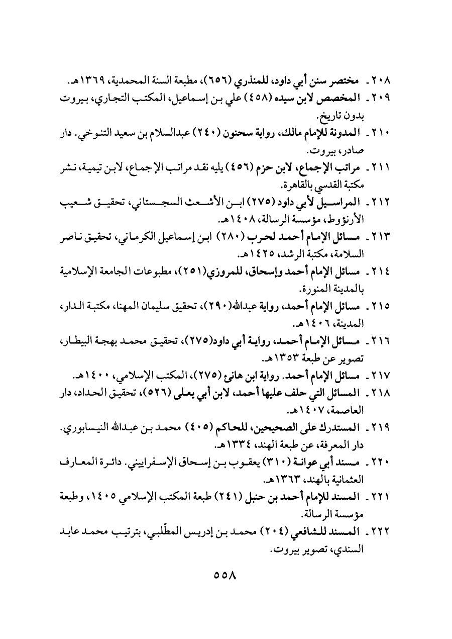 ٢٠٨ - مختصر سنن أبي داود، للمنذري (٦٥٦)، مطبعة السنة المحمدية، ١٣٦٩ هـ.