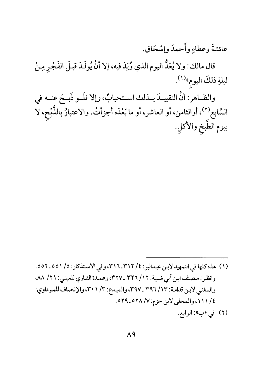 قال مالك: ولا يُعَدُّ اليوم الذي وُلِدَ فيه، إلا أنْ يُولَدَ قبلَ الفَجْرِ مِنْ ليلةِ ذلكَ اليومِ" (¬١).