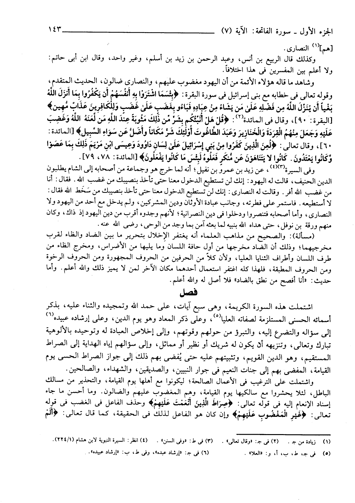 وَشَاهِدُ مَا قَالَهُ هَؤُلَاءِ الْأَئِمَّةُ مِنْ أَنَّ الْيَهُودَ مَغْضُوبٌ عَلَيْهِمْ، وَالنَّصَارَى ضَالُّونَ، الْحَدِيثُ الْمُتَقَدِّمُ، وَقَوْلُهُ تَعَالَى فِي خِطَابِهِ مَعَ بَنِي إِسْرَائِيلَ فِي سُورَةِ الْبَقَرَةِ: {بِئْسَمَا اشْتَرَوْا بِهِ أَنْفُسَهُمْ أَنْ يَكْفُرُوا بِمَا أَنزلَ اللَّهُ بَغْيًا أَنْ يُنزلَ اللَّهُ مِنْ فَضْلِهِ عَلَى مَنْ يَشَاءُ مِنْ عِبَادِهِ فَبَاءُوا بِغَضَبٍ عَلَى غَضَبٍ وَلِلْكَافِرِينَ عَذَابٌ مُهِينٌ} [الْبَقَرَةِ: 90] ، وَقَالَ فِي الْمَائِدَةِ (¬2) {قُلْ هَلْ أُنَبِّئُكُمْ بِشَرٍّ مِنْ ذَلِكَ مَثُوبَةً عِنْدَ اللَّهِ مَنْ لَعَنَهُ اللَّهُ وَغَضِبَ عَلَيْهِ وَجَعَلَ مِنْهُمُ الْقِرَدَةَ وَالْخَنَازِيرَ وَعَبَدَ الطَّاغُوتَ أُولَئِكَ شَرٌّ مَكَانًا وَأَضَلُّ عَنْ سَوَاءِ السَّبِيلِ} [الْمَائِدَةِ: 60] ، وَقَالَ تَعَالَى: {لُعِنَ الَّذِينَ كَفَرُوا مِنْ بَنِي إِسْرَائِيلَ عَلَى لِسَانِ دَاوُدَ وَعِيسَى ابْنِ مَرْيَمَ ذَلِكَ بِمَا عَصَوْا وَكَانُوا يَعْتَدُونَ * كَانُوا لَا يَتَنَاهَوْنَ عَنْ مُنْكَرٍ فَعَلُوهُ لَبِئْسَ مَا كَانُوا يَفْعَلُونَ} [الْمَائِدَةِ: 78، 79] .