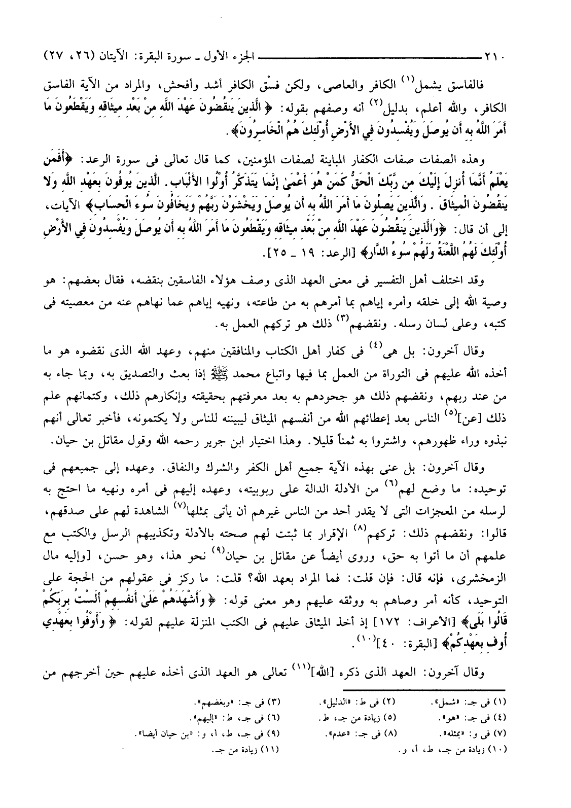 وَقَدِ اخْتَلَفَ أَهْلُ التَّفْسِيرِ فِي مَعْنَى الْعَهْدِ الَّذِي وُصِفَ هَؤُلَاءِ الْفَاسِقِينَ بِنَقْضِهِ، فَقَالَ بَعْضُهُمْ: هُوَ وَصِيَّةُ اللَّهِ إِلَى خَلْقِهِ وَأَمْرِهِ إِيَّاهُمْ بِمَا أَمَرَهُمْ بِهِ مِنْ طَاعَتِهِ، وَنَهْيِهِ إِيَّاهُمْ عَمَّا نَهَاهُمْ عَنْهُ مِنْ مَعْصِيَتِهِ فِي كُتُبِهِ، وَعَلَى لِسَانِ رُسُلِهِ، وَنَقْضُهُمْ (3) ذَلِكَ هُوَ تَرْكُهُمُ الْعَمَلَ بِهِ.