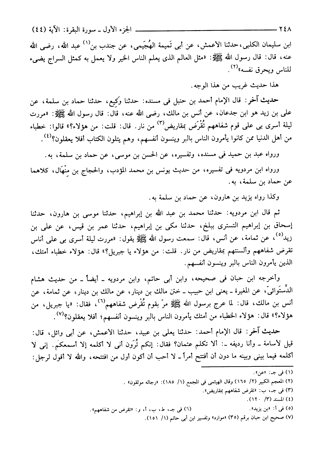 (7) صحيح ابن حبان برقم (35) "موارد" وتفسير ابن أبي حاتم (1/151) .