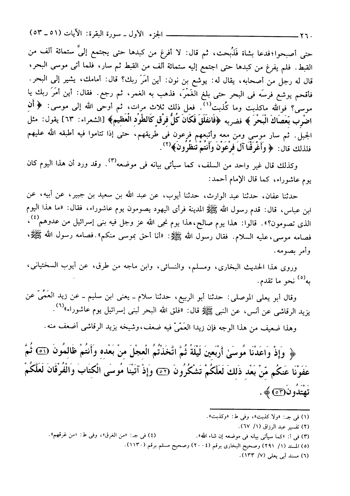 وَكَذَلِكَ قَالَ غَيْرُ وَاحِدٍ مِنَ السَّلَفِ، كَمَا سَيَأْتِي بَيَانُهُ في موضعه (3) . وَقَدْ وَرَدَ أَنَّ هَذَا الْيَوْمَ كَانَ يَوْمَ عَاشُورَاءَ، كَمَا قَالَ الْإِمَامُ أَحْمَدُ: