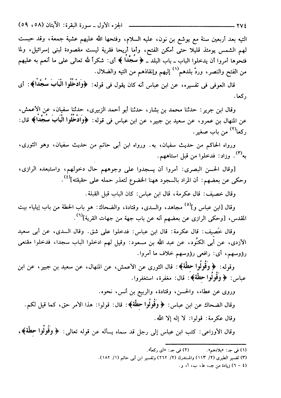 (3) تفسير الطبري (2/113) والمستدرك (2/262) وتفسير ابن أبي حاتم (1/182) .