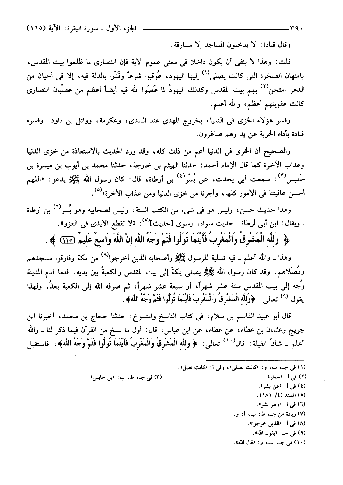 الَّذِينَ أُخْرِجُوا (8) مِنْ مَكَّةَ وَفَارَقُوا مَسْجِدَهُمْ ومُصَلاهم، وَقَدْ كَانَ رَسُولُ اللَّهِ صَلَّى اللَّهُ عَلَيْهِ وَسَلَّمَ يُصَلِّي بمكةَ إِلَى بَيْتِ الْمَقْدِسِ والكعبةُ بَيْنَ يَدَيْهِ. فَلَمَّا قَدِمَ الْمَدِينَةَ وُجه إِلَى بَيْتِ الْمَقْدِسِ سِتَّةَ عَشَرَ شَهْرًا، أَوْ سَبْعَةَ عَشَرَ شَهْرًا، ثُمَّ صَرَفَهُ اللَّهُ إِلَى الْكَعْبَةِ بعدُ، وَلِهَذَا يَقُولُ (9) تَعَالَى: {وَلِلَّهِ الْمَشْرِقُ وَالْمَغْرِبُ فَأَيْنَمَا تُوَلُّوا فَثَمَّ وَجْهُ اللَّهِ}