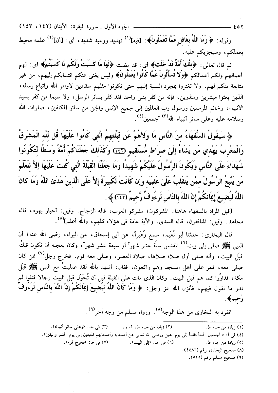 {سَيَقُولُ السُّفَهَاءُ مِنَ النَّاسِ مَا وَلاهُمْ عَنْ قِبْلَتِهِمُ الَّتِي كَانُوا عَلَيْهَا قُلْ لِلَّهِ الْمَشْرِقُ وَالْمَغْرِبُ يَهْدِي مَنْ يَشَاءُ إِلَى صِرَاطٍ مُسْتَقِيمٍ (142) وَكَذَلِكَ جَعَلْنَاكُمْ أُمَّةً وَسَطًا لِتَكُونُوا شُهَدَاءَ عَلَى النَّاسِ وَيَكُونَ الرَّسُولُ عَلَيْكُمْ شَهِيدًا وَمَا جَعَلْنَا الْقِبْلَةَ الَّتِي كُنْتَ عَلَيْهَا إِلا لِنَعْلَمَ مَنْ يَتَّبِعُ الرَّسُولَ مِمَّنْ يَنْقَلِبُ عَلَى عَقِبَيْهِ وَإِنْ كَانَتْ لَكَبِيرَةً إِلا عَلَى الَّذِينَ هَدَى اللَّهُ وَمَا كَانَ اللَّهُ لِيُضِيعَ إِيمَانَكُمْ إِنَّ اللَّهَ بِالنَّاسِ لَرَءُوفٌ رَحِيمٌ (143) }