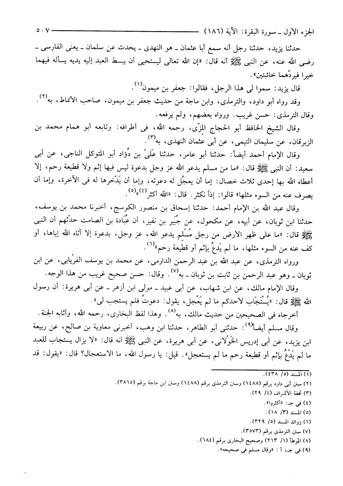 وَقَالَ مُسْلِمٌ أَيْضًا (9) : حَدَّثَنِي أَبُو الطَّاهِرِ، حَدَّثَنَا ابْنُ وَهْبٍ، أَخْبَرَنِي مُعَاوِيَةُ بْنُ صَالِحٍ، عَنْ ربيعة ابن يَزِيدَ، عَنْ أَبِي إِدْرِيسَ الخَوْلاني، عَنْ أَبِي هُرَيْرَةَ، عَنِ النَّبِيِّ صَلَّى اللَّهُ عَلَيْهِ وَسَلَّمَ أَنَّهُ قَالَ: "لَا يَزَالُ يُسْتَجَابُ لِلْعَبْدِ مَا لَمْ يَدْعُ بِإِثْمٍ أَوْ قَطِيعَةِ رَحِمٍ مَا لَمْ يَسْتَعْجِلْ". قِيلَ: يَا رَسُولَ اللَّهِ، مَا الاستعجال؟ قال: "يقول: قد