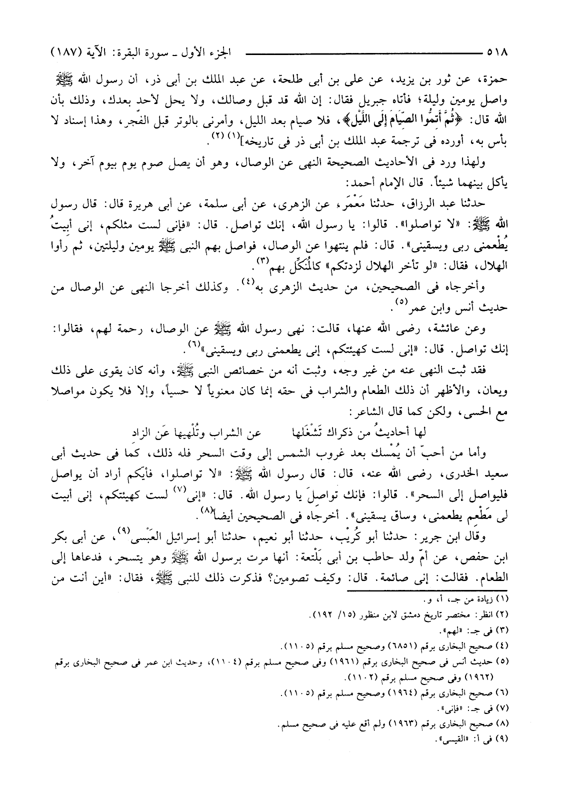 وَأَخْرَجَاهُ فِي الصَّحِيحَيْنِ، مِنْ حَدِيثِ الزُّهْرِيِّ بِهِ (4) . وَكَذَلِكَ أَخْرَجَا النَّهْيَ عَنِ الْوِصَالِ مِنْ حَدِيثِ أَنَسٍ وَابْنِ عُمَرَ (5) .