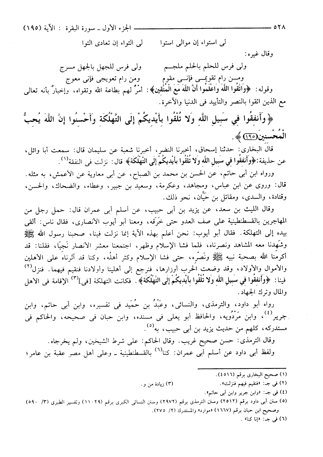 {وَأَنْفِقُوا فِي سَبِيلِ اللَّهِ وَلا تُلْقُوا بِأَيْدِيكُمْ إِلَى التَّهْلُكَةِ وَأَحْسِنُوا إِنَّ اللَّهَ يُحِبُّ الْمُحْسِنِينَ (195) }