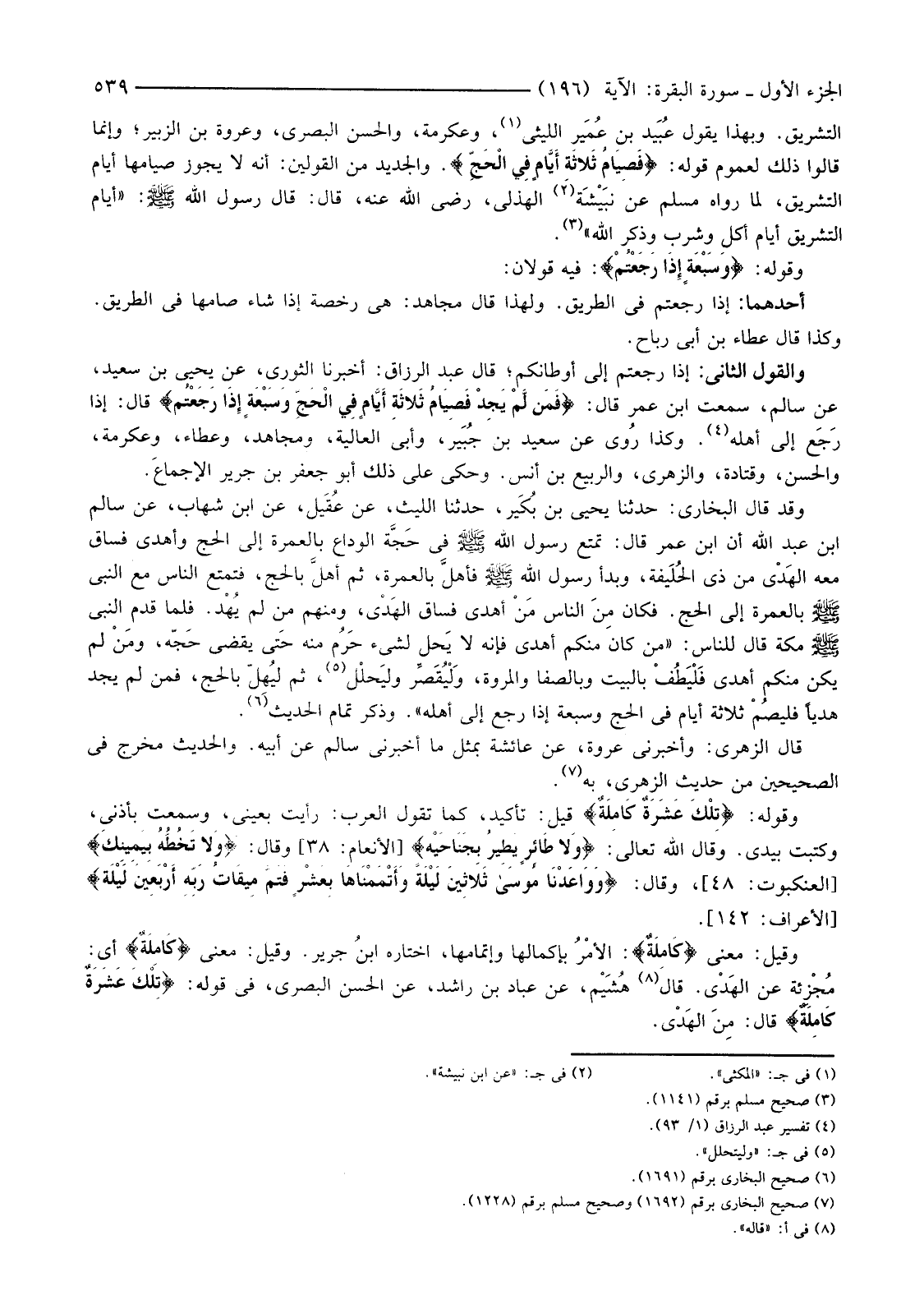 وَقِيلَ: مَعْنَى {كَامِلَةٌ} الأمْرُ بِإِكْمَالِهَا وَإِتْمَامِهَا، اخْتَارَهُ ابنُ جَرِيرٍ. وَقِيلَ: مَعْنَى {كَامِلَةٌ} أَيْ: مُجْزئة عَنِ الهَدْي. قَالَ (8) هُشَيْم، عَنْ عَبَّادِ بْنِ رَاشِدٍ، عَنِ الْحَسَنِ الْبَصْرِيِّ، فِي قَوْلِهِ: {تِلْكَ عَشَرَةٌ كَامِلَةٌ} قال: مِنَ الهَدْي.
