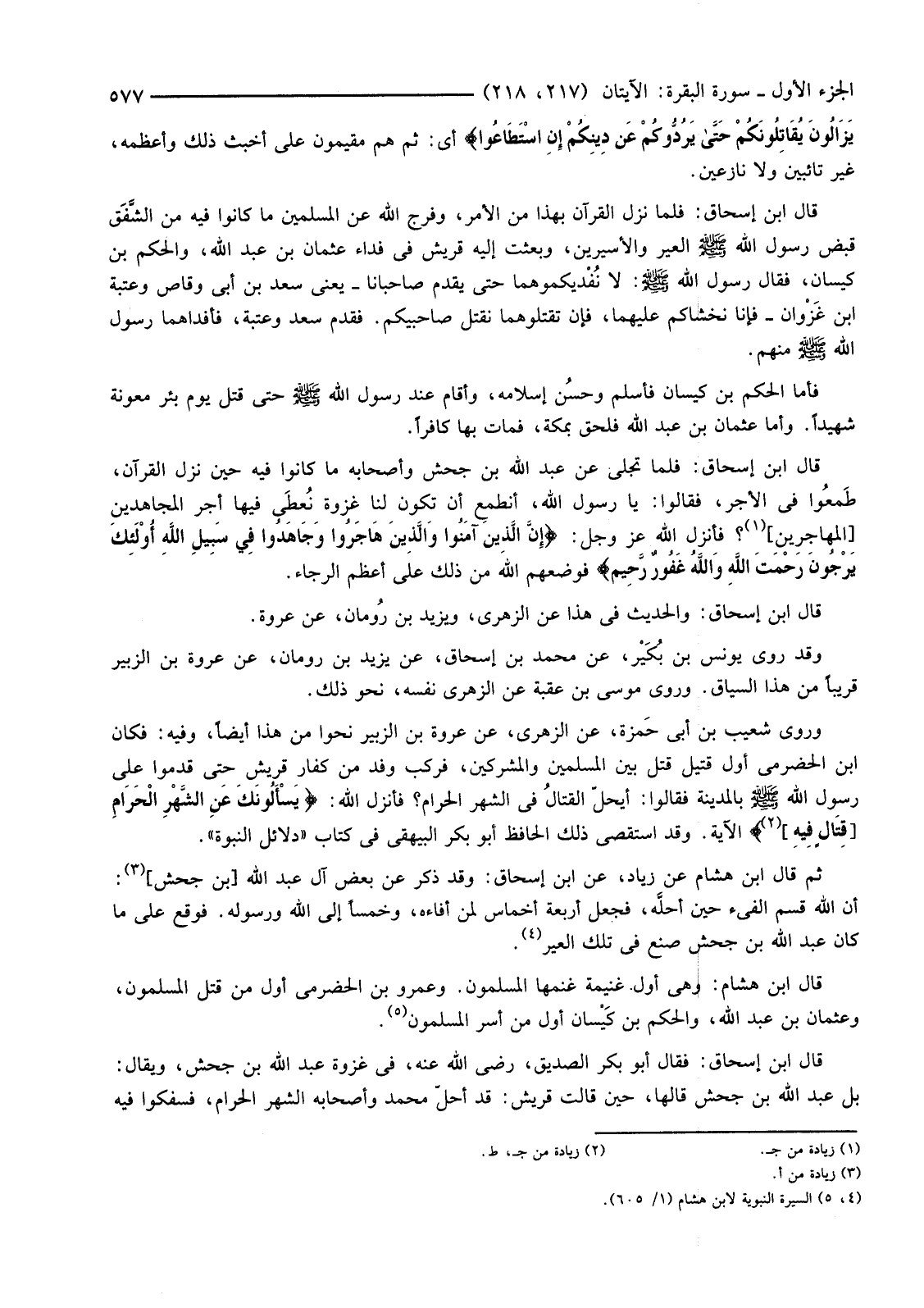 ثُمَّ قَالَ ابْنُ هِشَامٍ عَنْ زِيَادٍ، عَنِ ابْنِ إِسْحَاقَ: وَقَدْ ذَكَرَ عَنْ بَعْضِ آلِ عَبْدِ اللَّهِ [بْنِ جَحْشٍ] (3) أَنَّ اللَّهَ قَسَمَ الْفَيْءَ حِينَ أحلَّه، فَجَعَلَ أَرْبَعَةَ أَخْمَاسٍ لِمَنْ أَفَاءَهُ، وَخُمُسًا إِلَى اللَّهِ وَرَسُولِهِ. فَوَقَعَ عَلَى مَا كَانَ عَبْدُ اللَّهِ بْنُ جَحْشٍ صَنَعَ فِي تِلْكَ الْعِيرِ (4) .