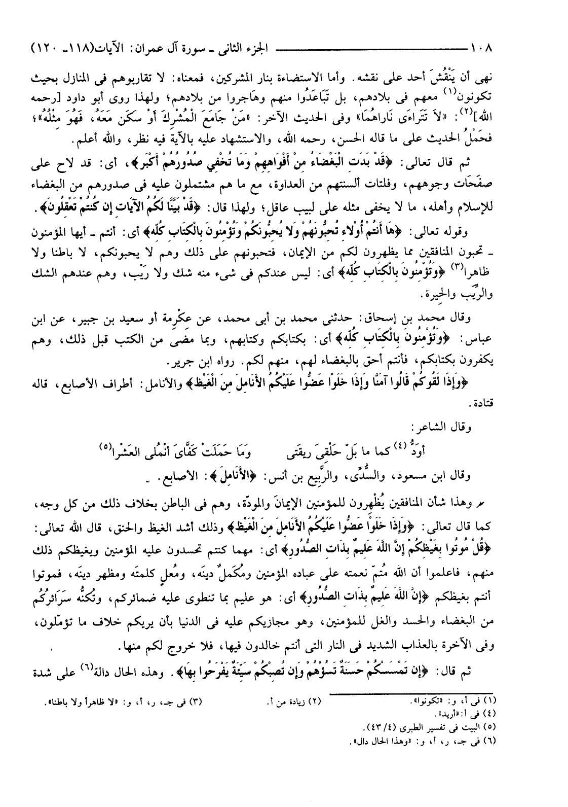 وَقَوْلُهُ تَعَالَى: {هَا أَنْتُمْ أُولاءِ تُحِبُّونَهُمْ وَلا يُحِبُّونَكُمْ وَتُؤْمِنُونَ بِالْكِتَابِ كُلِّهِ} أَيْ: أَنْتُمْ -أَيُّهَا الْمُؤْمِنُونَ-تُحِبُّونَ الْمُنَافِقِينَ مِمَّا يُظْهِرُونَ لَكُمْ مِنَ الْإِيمَانِ، فَتُحِبُّونَهُمْ عَلَى ذَلِكَ وَهُمْ لَا يُحِبُّونَكُمْ، لَا بَاطِنًا وَلَا ظَاهِرًا (3) {وَتُؤْمِنُونَ بِالْكِتَابِ كُلِّهِ} أَيْ: لَيْسَ عِنْدَكُمْ فِي شَيْءٍ مِنْهُ شَكٌّ وَلَا رَيْب، وَهُمْ عِنْدَهُمُ الشَّكُّ والرِّيَب والحِيرة.