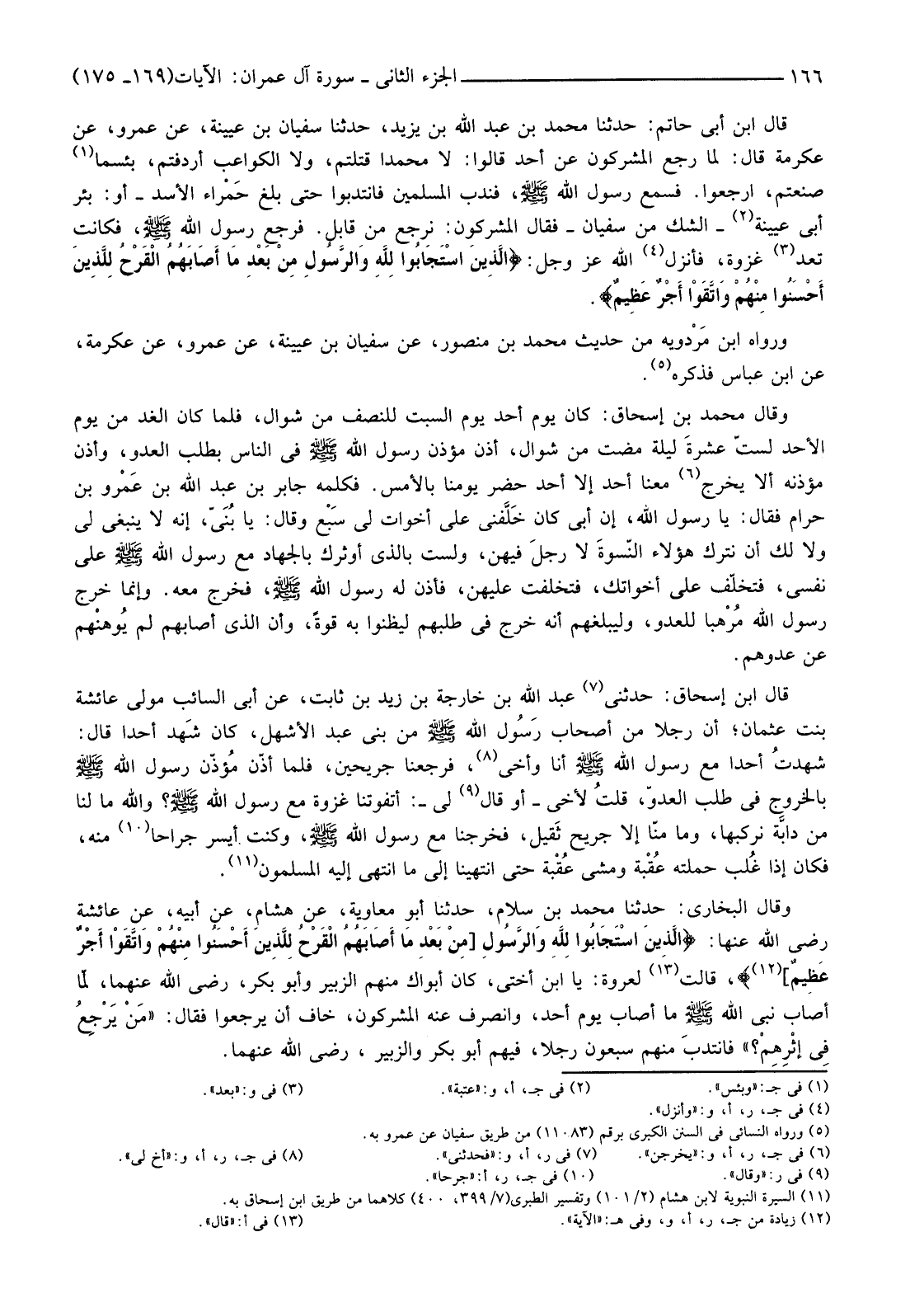 (11) السيرة النبوية لابن هشام (2/101) وتفسير الطبري (7/399، 400) كلاهما من طريق ابن إسحاق به.