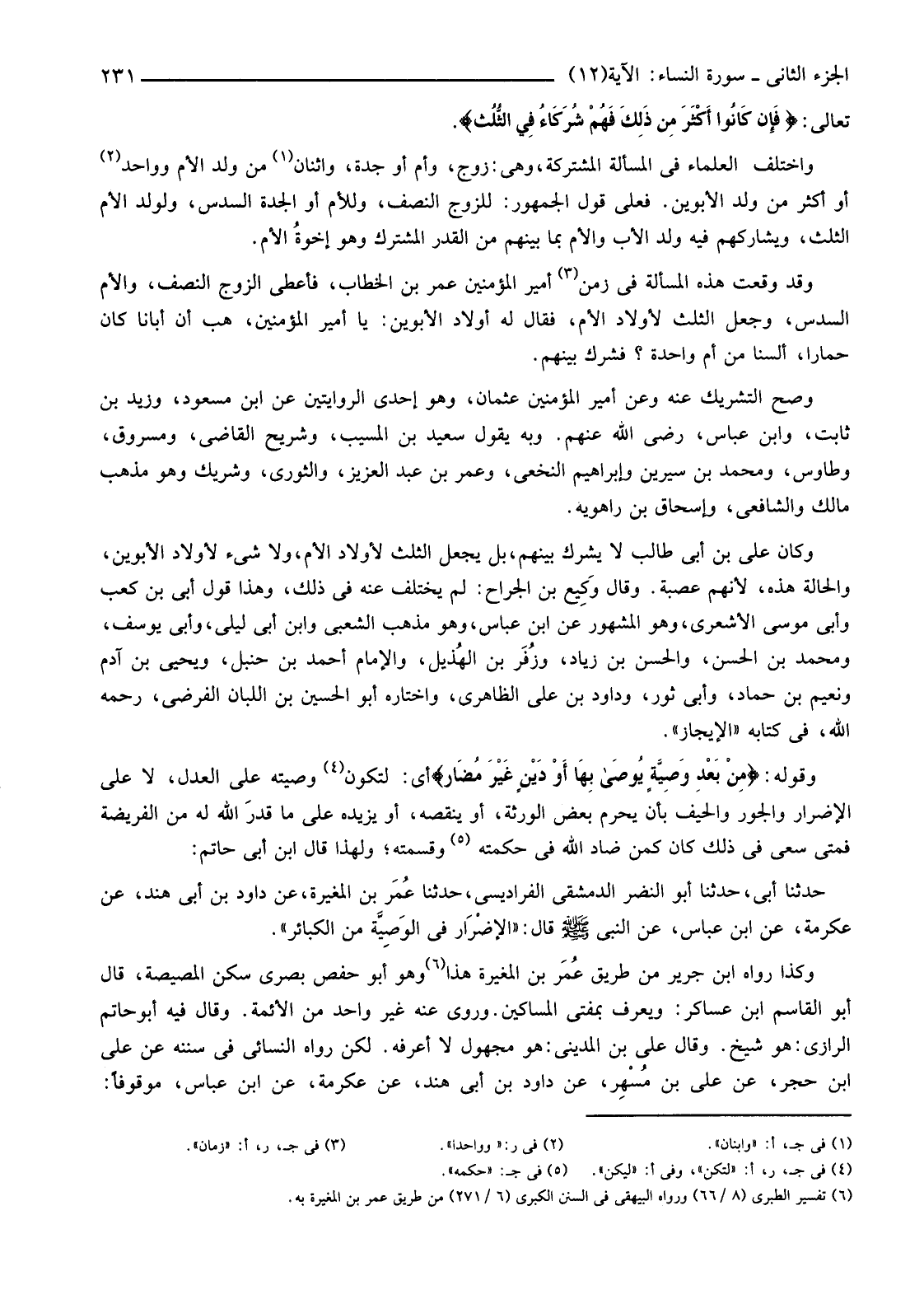 (6) تفسير الطبري (8/66) ورواه البيهقي في السنن الكبرى (6/271) من طريق عمر بن المغيرة به.
