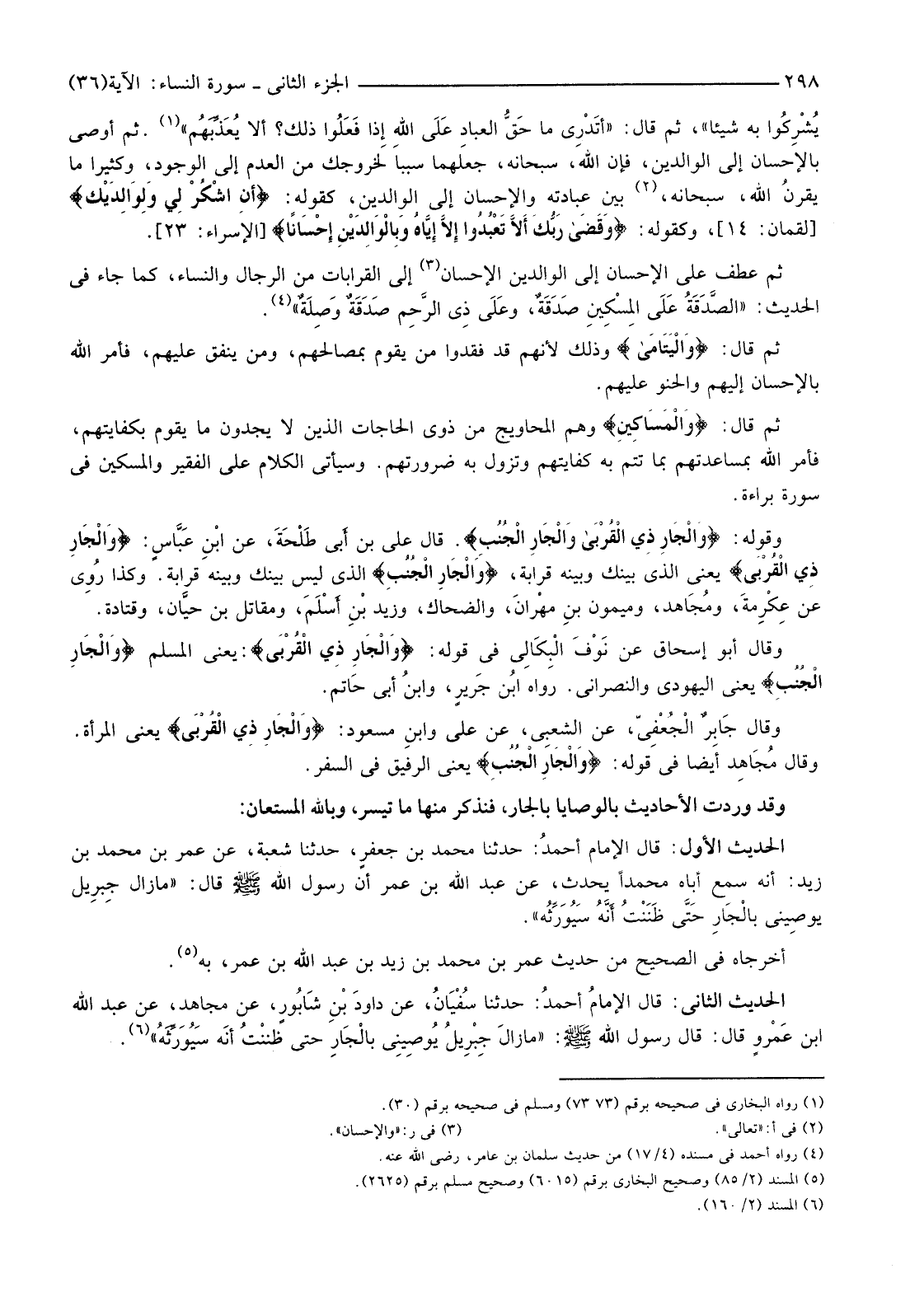 ثُمَّ عَطَفَ عَلَى الْإِحْسَانِ إِلَى الْوَالِدَيْنِ الْإِحْسَانَ (3) إِلَى الْقَرَابَاتِ مِنَ الرِّجَالِ وَالنِّسَاءِ، كَمَا جَاءَ فِي الْحَدِيثِ: "الصَّدَقَةُ عَلَى المِسْكِينِ صَدَقَةٌ، وعَلَى ذِي الرَّحِم صَدَقَةٌ وصِلَةٌ" (4) .