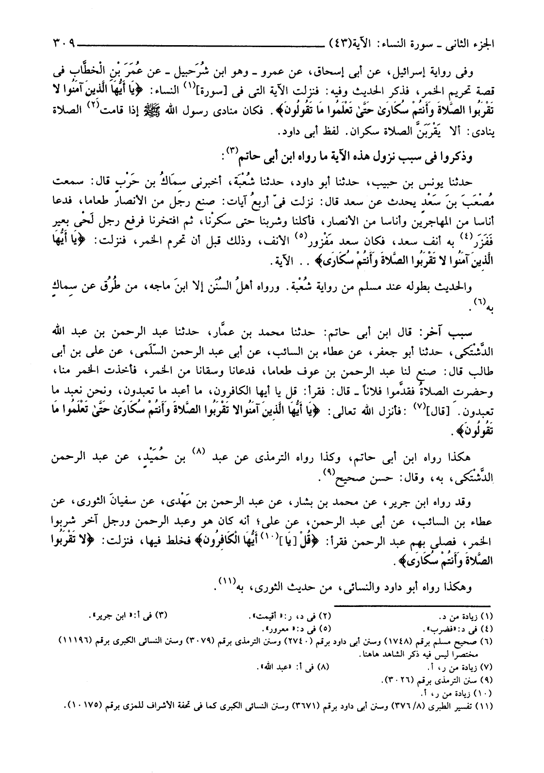 (11) تفسير الطبري (8/376) وسنن أبي داود برقم (3671) وسنن النسائي الكبرى كما في تحفة الأشراف للمزي برقم (10175) .