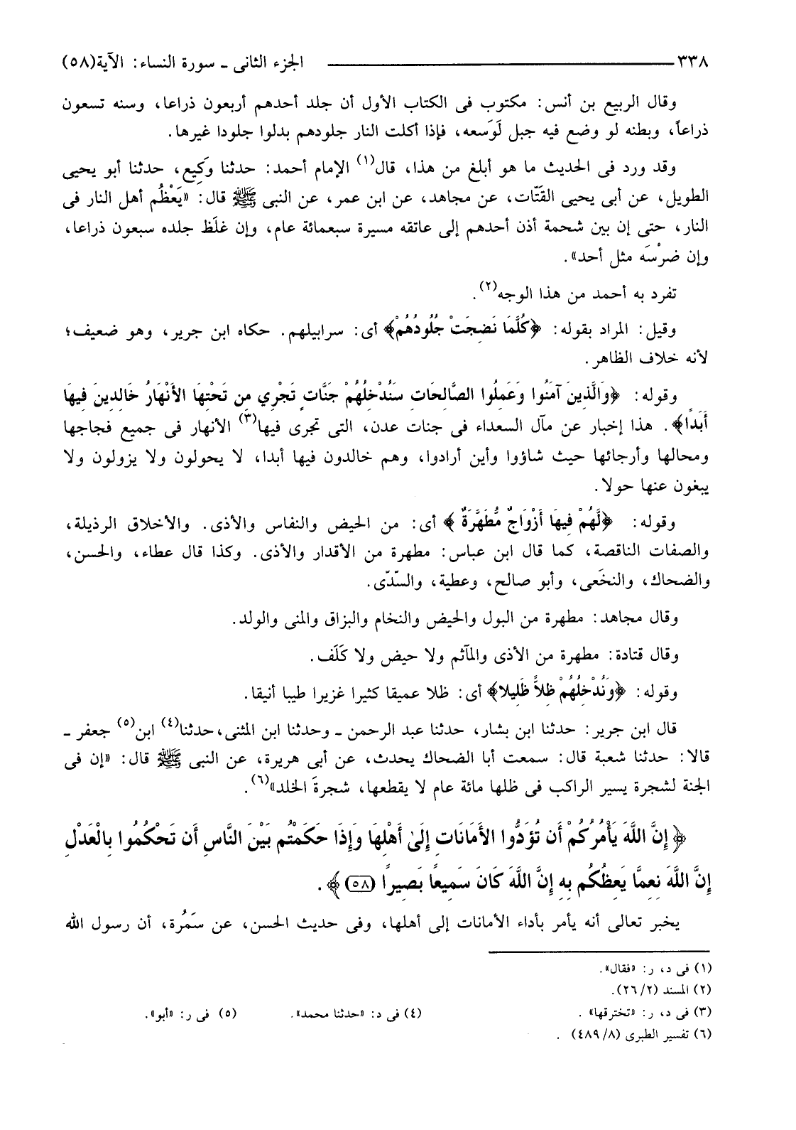 {إِنَّ اللَّهَ يَأْمُرُكُمْ أَنْ تُؤَدُّوا الأمَانَاتِ إِلَى أَهْلِهَا وَإِذَا حَكَمْتُمْ بَيْنَ النَّاسِ أَنْ تَحْكُمُوا بِالْعَدْلِ إِنَّ اللَّهَ نِعِمَّا يَعِظُكُمْ بِهِ إِنَّ اللَّهَ كَانَ سَمِيعًا بَصِيرًا (58) }