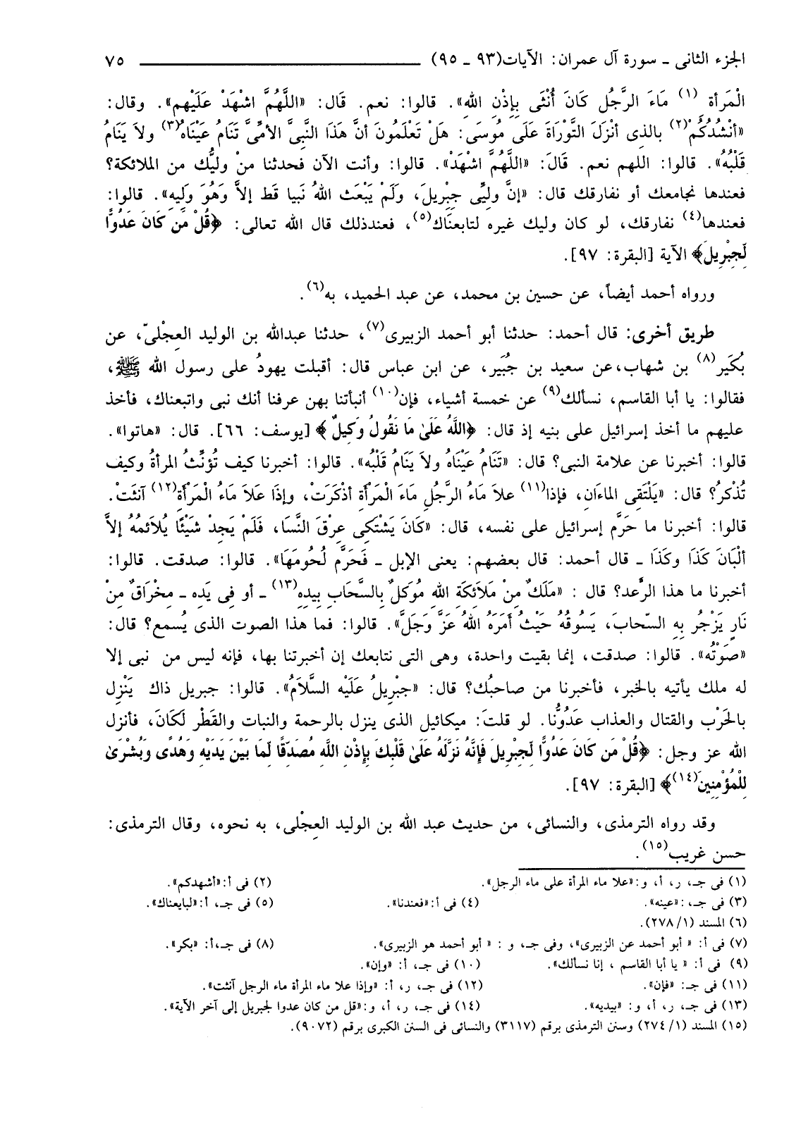 (15) المسند (1/274) وسنن الترمذي برقم (3117) والنسائي في السنن الكبرى برقم (9072) .