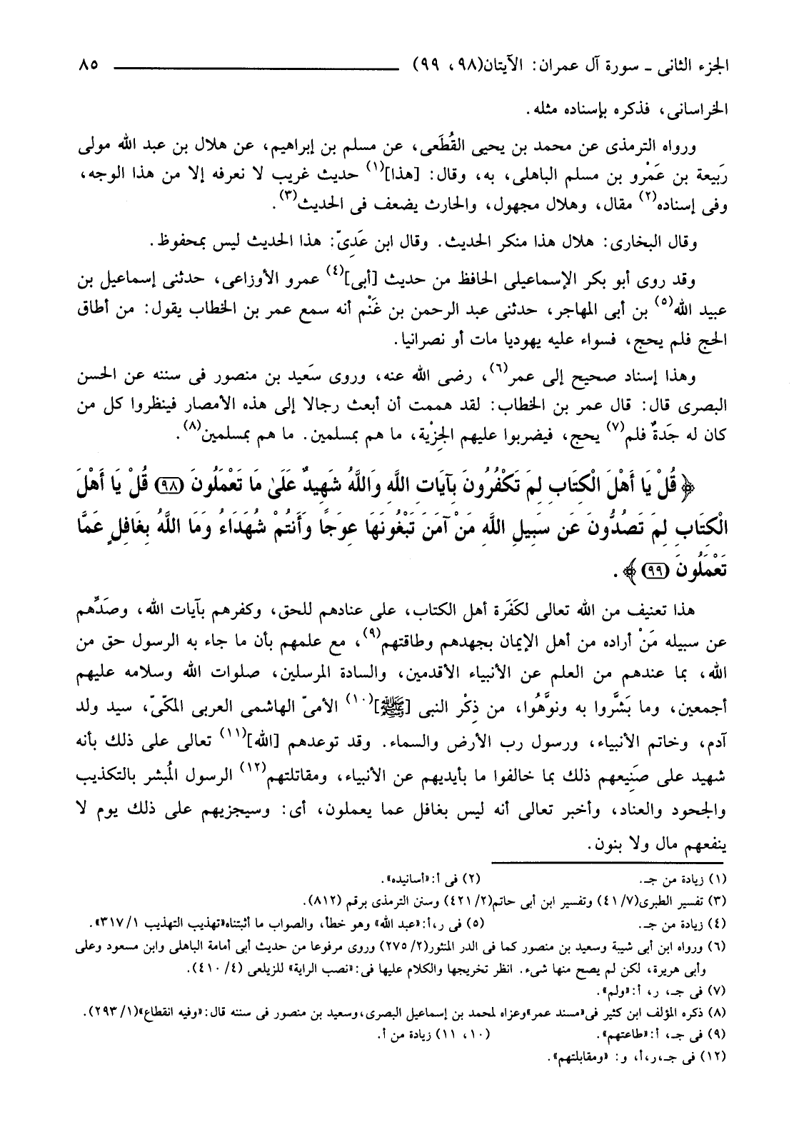 (3) تفسير الطبري (7/41) وتفسير ابن أبي حاتم (2/421) وسنن الترمذي برقم (812) .