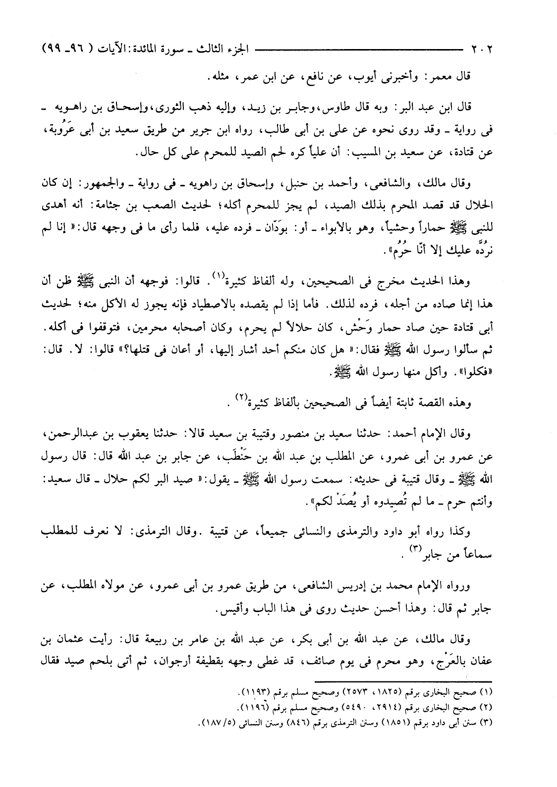وَكَذَا رَوَاهُ أَبُو دَاوُدَ وَالتِّرْمِذِيُّ وَالنَّسَائِيُّ جَمِيعًا، عَنْ قُتَيْبَةَ. وَقَالَ التِّرْمِذِيُّ: لَا نَعْرِفُ لِلْمُطَّلِبِ سَمَاعًا مِنْ جَابِرٍ. (3)