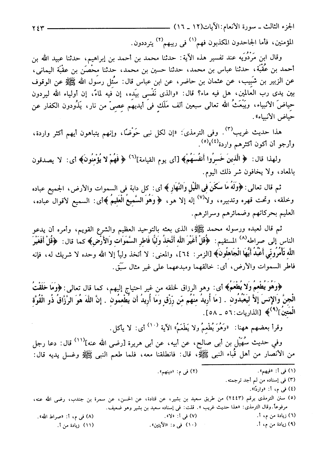 الْمُؤْمِنِينَ، فَأَمَّا الْجَاحِدُونَ الْمُكَذِّبُونَ فَهُمْ (1) فِي رَيْبِهِمْ (2) يَتَرَدَّدُونَ.