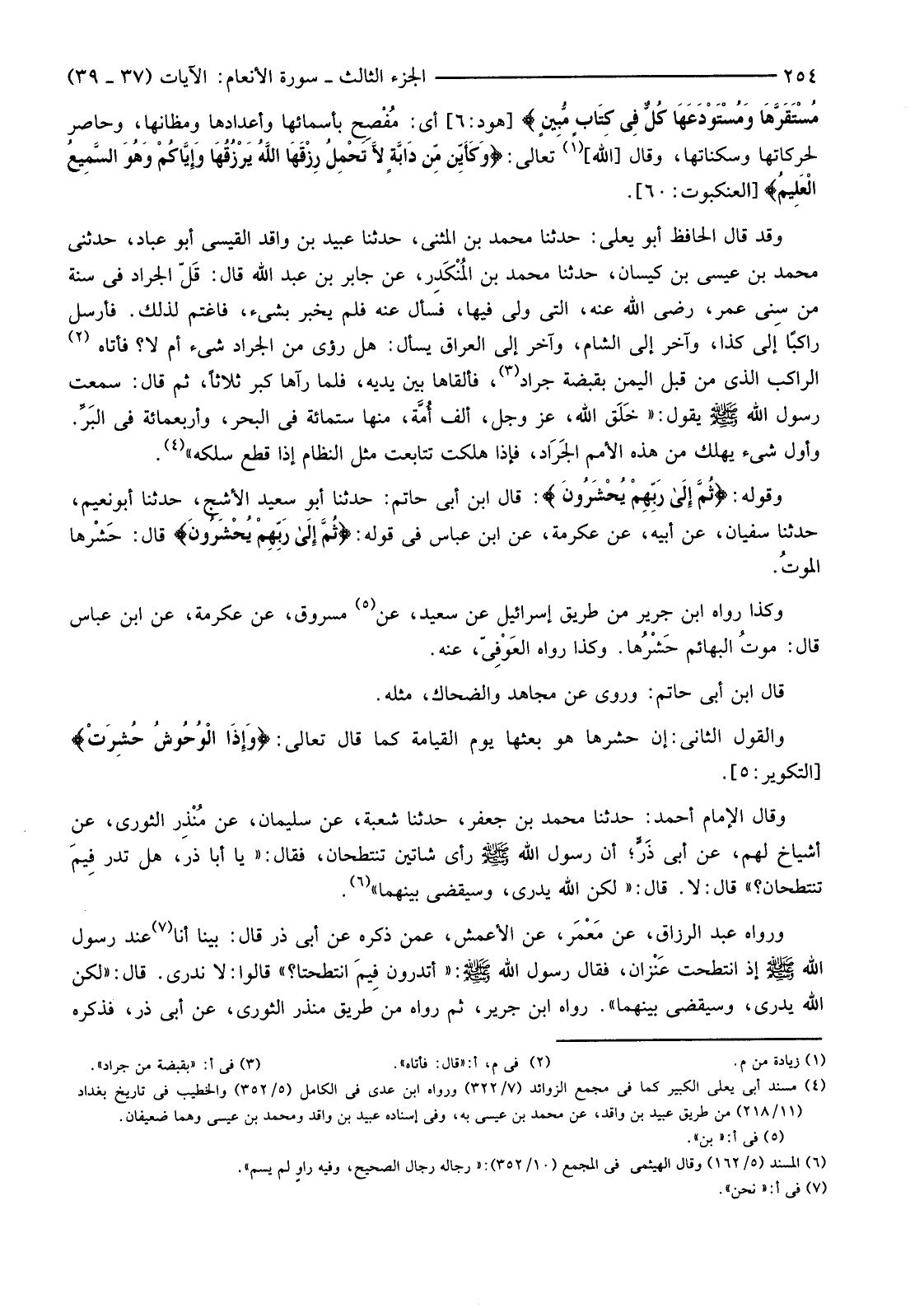 وَكَذَا رَوَاهُ ابْنُ جَرِيرٍ مِنْ طَرِيقِ إِسْرَائِيلَ عَنْ (5) سَعِيدٍ، عَنْ مَسْرُوقٍ، عَنْ عِكْرِمة، عَنِ ابْنِ عَبَّاسٍ قَالَ: موتُ الْبَهَائِمِ حَشْرُها. وَكَذَا رَوَاهُ العُوفِيّ، عَنْهُ.