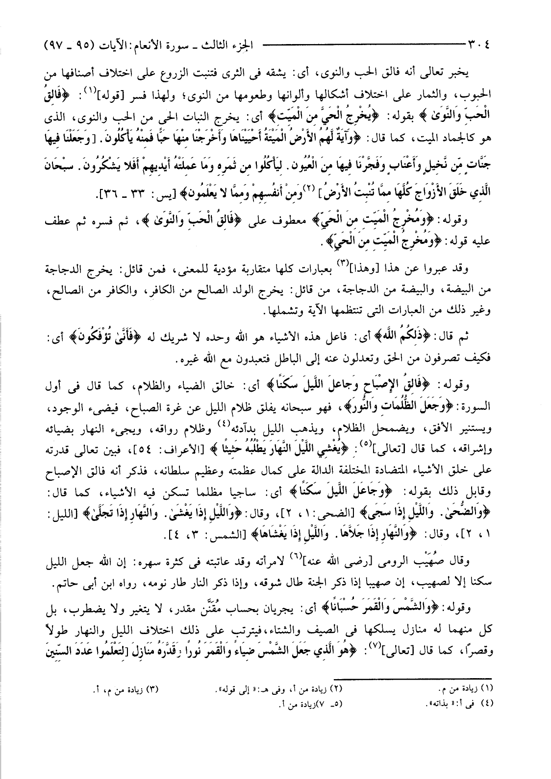 {إِنَّ اللَّهَ فَالِقُ الْحَبِّ وَالنَّوَى يُخْرِجُ الْحَيَّ مِنَ الْمَيِّتِ وَمُخْرِجُ الْمَيِّتِ مِنَ الْحَيِّ ذَلِكُمُ اللَّهُ فَأَنَّى تُؤْفَكُونَ (95) فَالِقُ الإصْبَاحِ وَجَعَلَ اللَّيْلَ سَكَنًا وَالشَّمْسَ وَالْقَمَرَ حُسْبَانًا ذَلِكَ تَقْدِيرُ الْعَزِيزِ الْعَلِيمِ (96) وَهُوَ الَّذِي جَعَلَ لَكُمُ النُّجُومَ لِتَهْتَدُوا بِهَا فِي ظُلُمَاتِ الْبَرِّ وَالْبَحْرِ قَدْ فَصَّلْنَا الآيَاتِ لِقَوْمٍ يَعْلَمُونَ (97) }