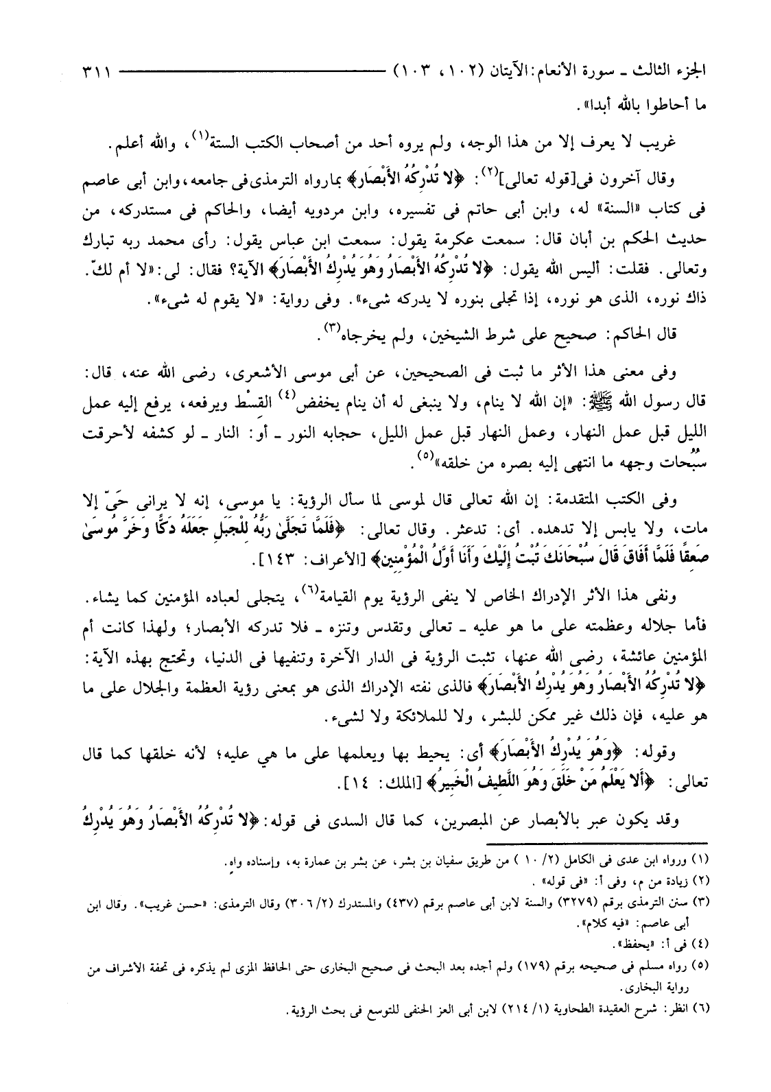 (6) انظر: شرح العقيدة الطحاوية (1/214) لابن أبي العز الحنفي للتوسع في بحث الرؤية.