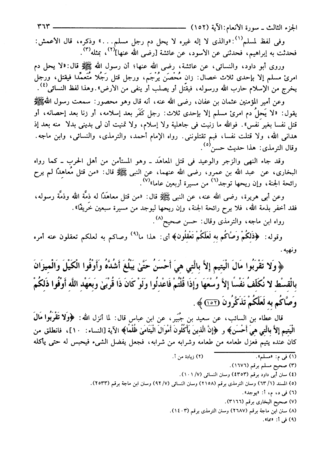 {وَلا تَقْرَبُوا مَالَ الْيَتِيمِ إِلا بِالَّتِي هِيَ أَحْسَنُ حَتَّى يَبْلُغَ أَشُدَّهُ وَأَوْفُوا الْكَيْلَ وَالْمِيزَانَ بِالْقِسْطِ لَا نُكَلِّفُ نَفْسًا إِلا وُسْعَهَا وَإِذَا قُلْتُمْ فَاعْدِلُوا وَلَوْ كَانَ ذَا قُرْبَى وَبِعَهْدِ اللَّهِ أَوْفُوا ذَلِكُمْ وَصَّاكُمْ بِهِ لَعَلَّكُمْ تَذَكَّرُونَ (152) }