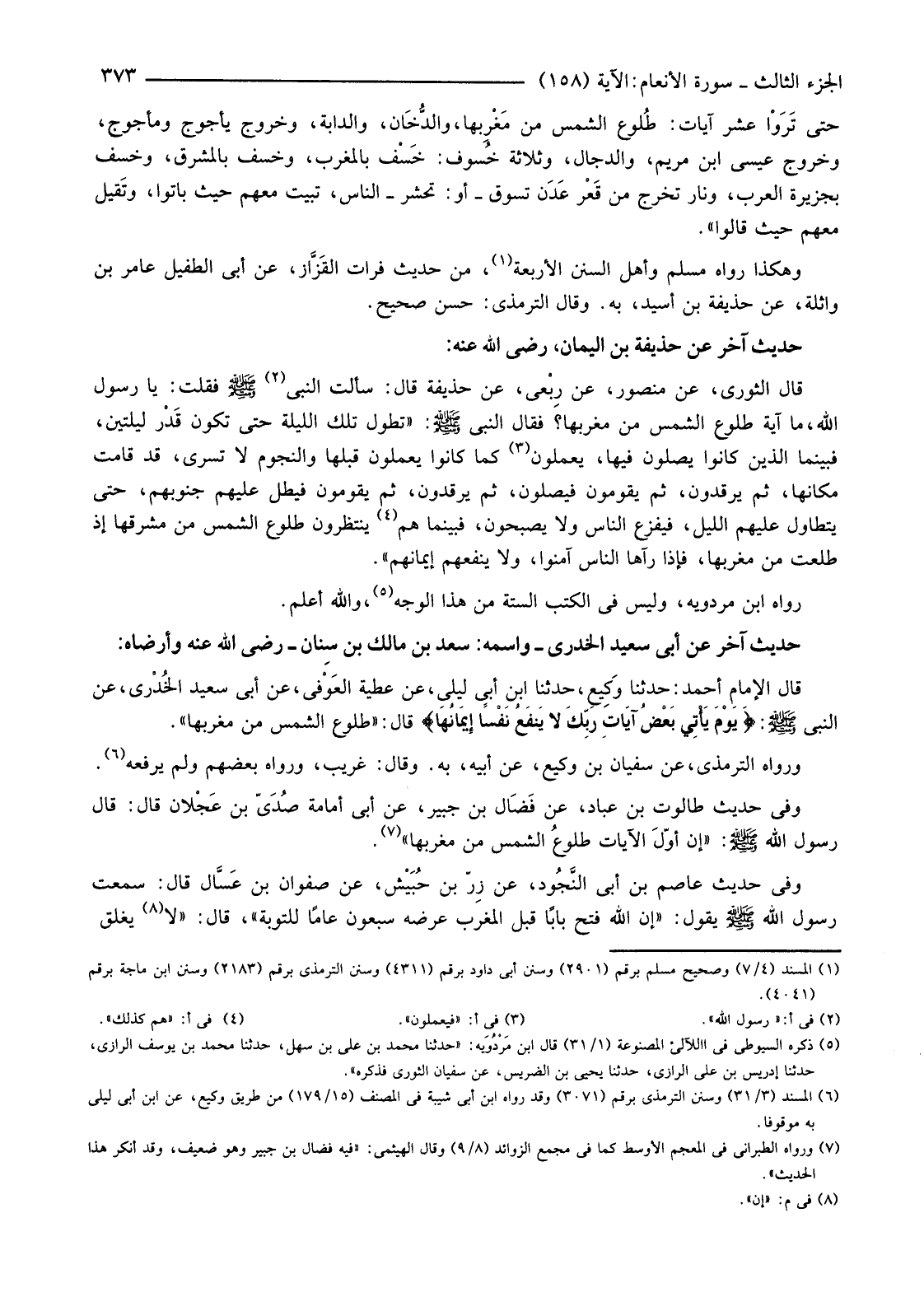(1) المسند (4/7) وصحيح مسلم برقم (2901) وسنن أبي داود برقم (4311) وسنن الترمذي برقم (2183) وسنن ابن ماجة برقم (4041) .