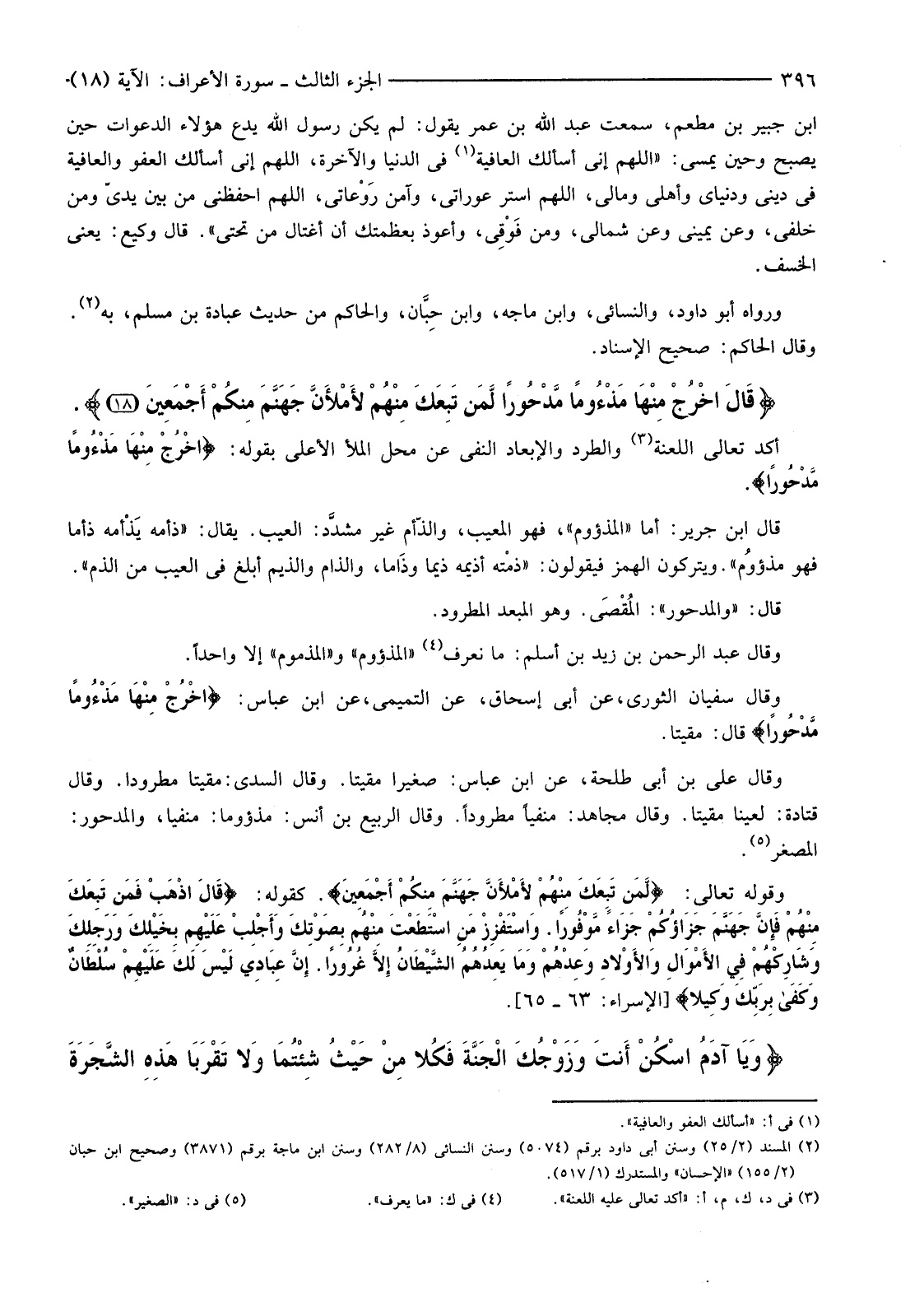 {قَالَ اخْرُجْ مِنْهَا مَذْءُومًا مَدْحُورًا لَمَنْ تَبِعَكَ مِنْهُمْ لأمْلأنَّ جَهَنَّمَ مِنْكُمْ أَجْمَعِينَ (18) }