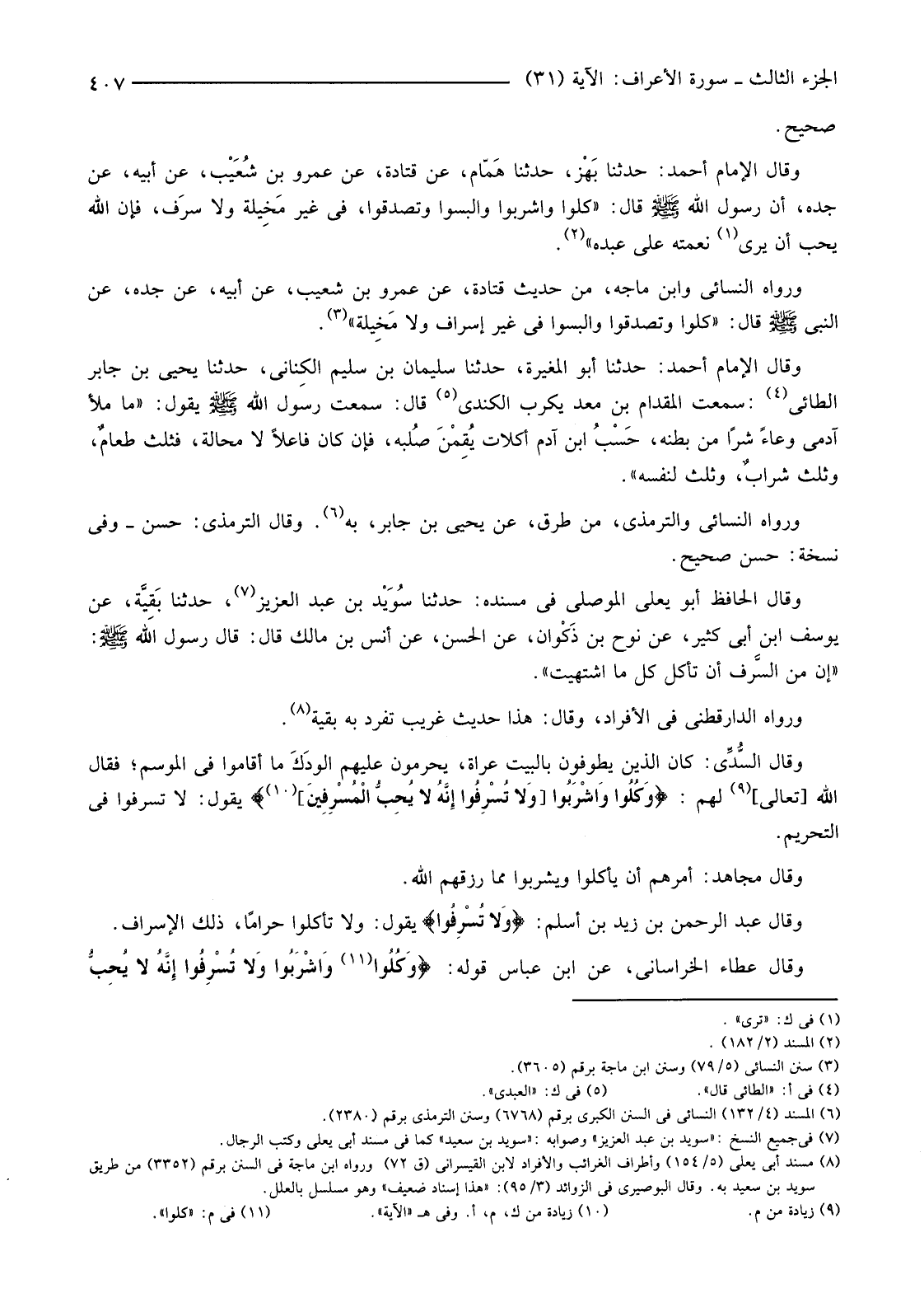 وَقَالَ عَبْدُ الرَّحْمَنِ بْنُ زَيْدِ بْنِ أَسْلَمَ: {وَلا تُسْرِفُوا} يَقُولُ: وَلَا تَأْكُلُوا حَرَامًا، ذَلِكَ الْإِسْرَافُ.
