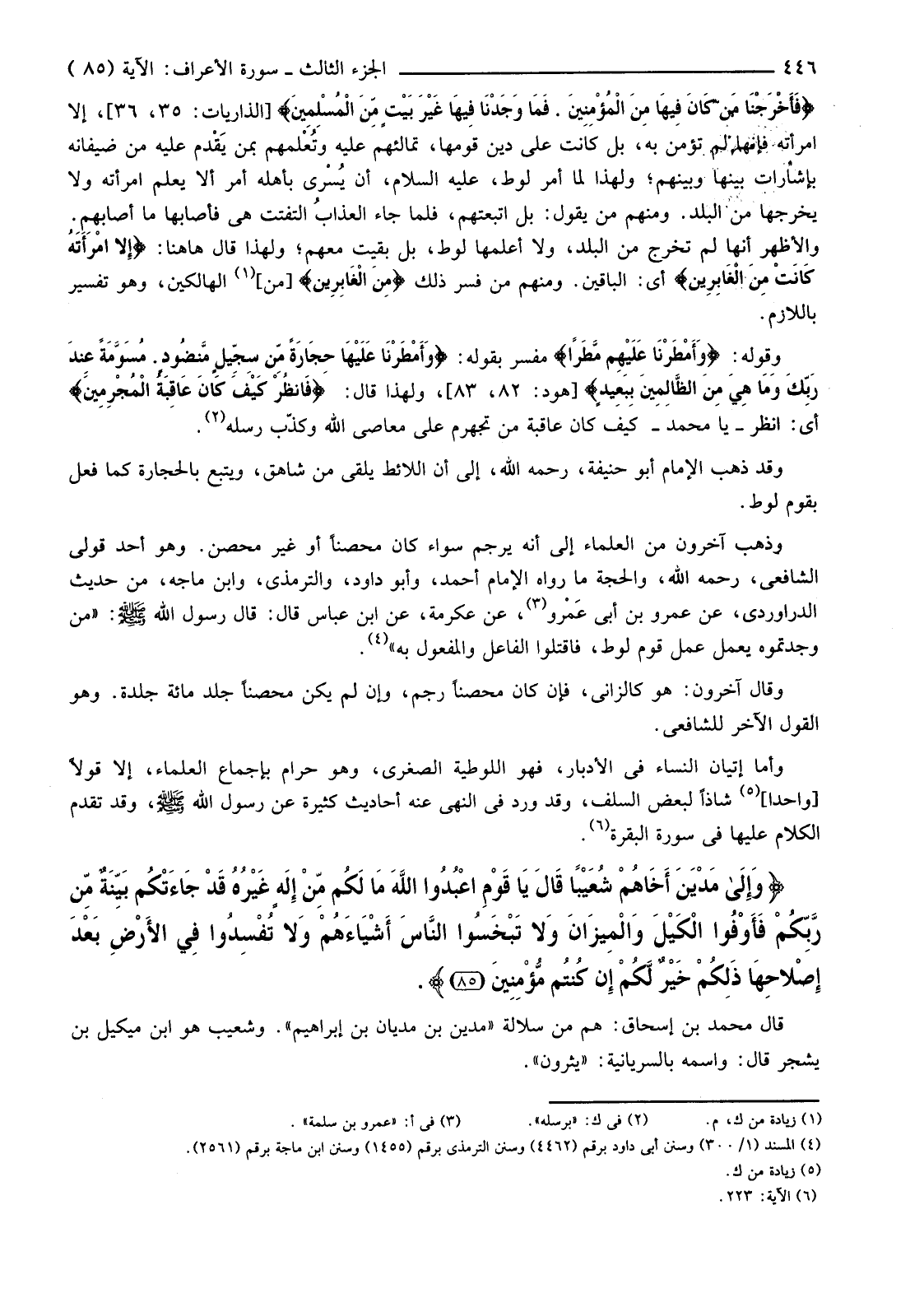 {وَإِلَى مَدْيَنَ أَخَاهُمْ شُعَيْبًا قَالَ يَا قَوْمِ اعْبُدُوا اللَّهَ مَا لَكُمْ مِنْ إِلَهٍ غَيْرُهُ قَدْ جَاءَتْكُمْ بَيِّنَةٌ مِنْ رَبِّكُمْ فَأَوْفُوا الْكَيْلَ وَالْمِيزَانَ وَلا تَبْخَسُوا النَّاسَ أَشْيَاءَهُمْ وَلا تُفْسِدُوا فِي الأرْضِ بَعْدَ إِصْلاحِهَا ذَلِكُمْ خَيْرٌ لَكُمْ إِنْ كُنْتُمْ مُؤْمِنِينَ (85) }