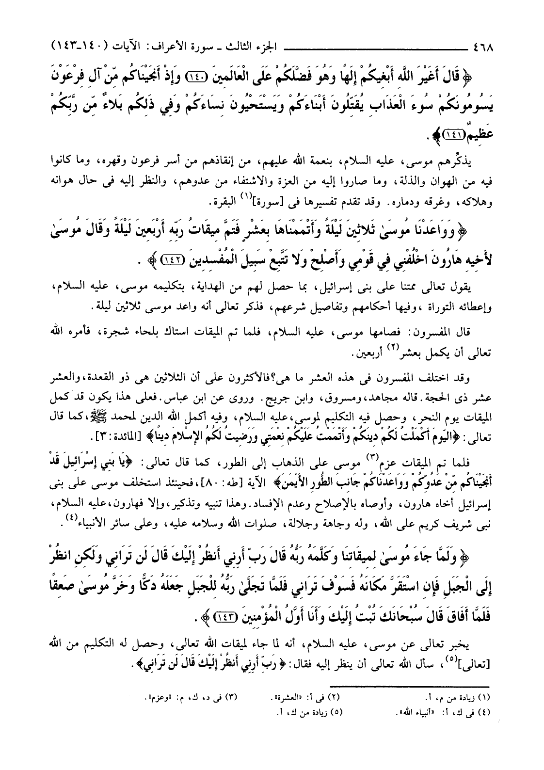 {وَوَاعَدْنَا مُوسَى ثَلاثِينَ لَيْلَةً وَأَتْمَمْنَاهَا بِعَشْرٍ فَتَمَّ مِيقَاتُ رَبِّهِ أَرْبَعِينَ لَيْلَةً وَقَالَ مُوسَى لأخِيهِ هَارُونَ اخْلُفْنِي فِي قَوْمِي وَأَصْلِحْ وَلا تَتَّبِعْ سَبِيلَ الْمُفْسِدِينَ (142) }