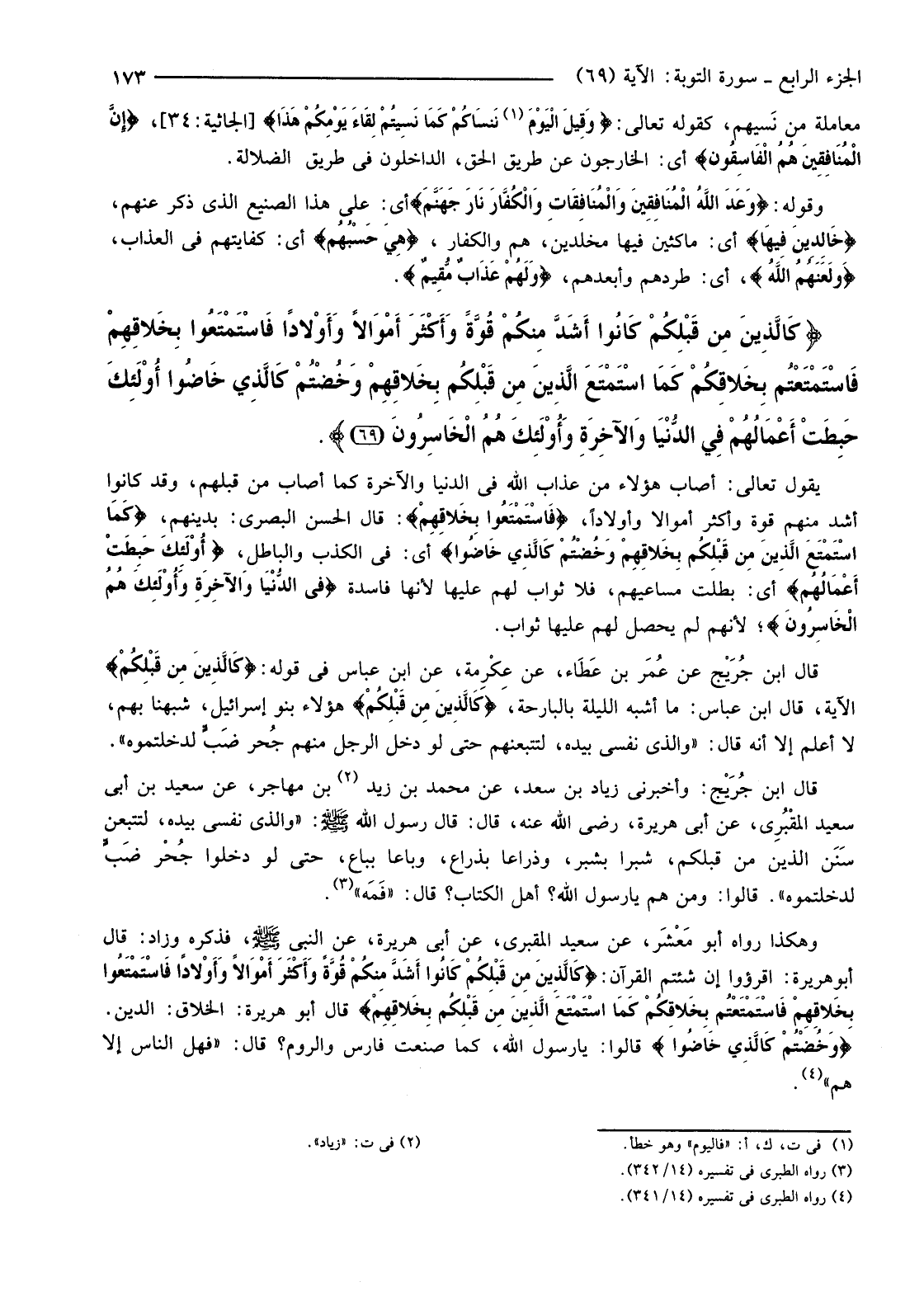 {كَالَّذِينَ مِنْ قَبْلِكُمْ كَانُوا أَشَدَّ مِنْكُمْ قُوَّةً وَأَكْثَرَ أَمْوَالا وَأَوْلادًا فَاسْتَمْتَعُوا بِخَلاقِهِمْ فَاسْتَمْتَعْتُمْ بِخَلاقِكُمْ كَمَا اسْتَمْتَعَ الَّذِينَ مِنْ قَبْلِكُمْ بِخَلاقِهِمْ وَخُضْتُمْ كَالَّذِي خَاضُوا أُولَئِكَ حَبِطَتْ أَعْمَالُهُمْ فِي الدُّنْيَا وَالآخِرَةِ وَأُولَئِكَ هُمُ الْخَاسِرُونَ (69) }