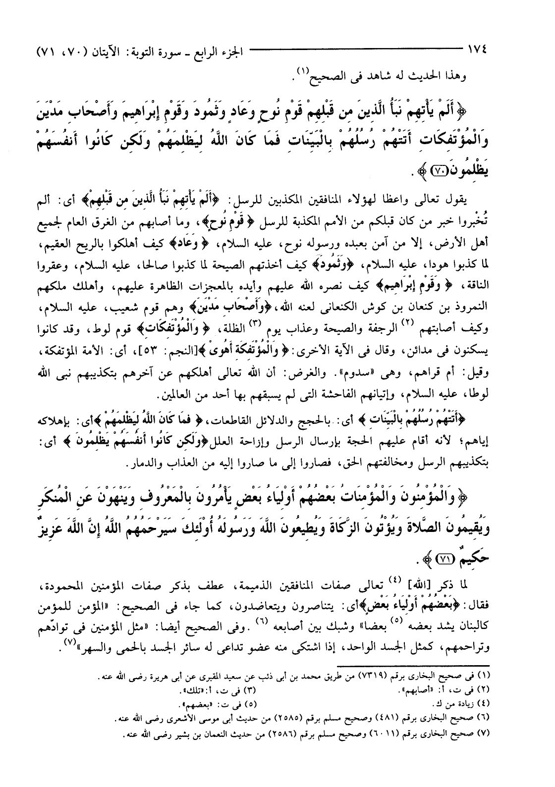 {أَلَمْ يَأْتِهِمْ نَبَأُ الَّذِينَ مِنْ قَبْلِهِمْ قَوْمِ نُوحٍ وَعَادٍ وَثَمُودَ وَقَوْمِ إِبْرَاهِيمَ وَأَصْحَابِ مَدْيَنَ وَالْمُؤْتَفِكَاتِ أَتَتْهُمْ رُسُلُهُمْ بِالْبَيِّنَاتِ فَمَا كَانَ اللَّهُ لِيَظْلِمَهُمْ وَلَكِنْ كَانُوا أَنْفُسَهُمْ يَظْلِمُونَ (70) }