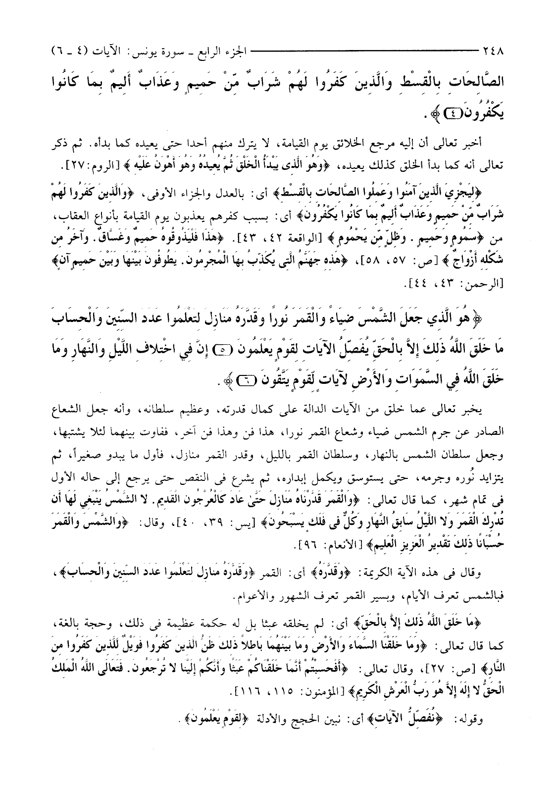 {هُوَ الَّذِي جَعَلَ الشَّمْسَ ضِيَاءً وَالْقَمَرَ نُورًا وَقَدَّرَهُ مَنَازِلَ لِتَعْلَمُوا عَدَدَ السِّنِينَ وَالْحِسَابَ مَا خَلَقَ اللَّهُ ذَلِكَ إِلا بِالْحَقِّ يُفَصِّلُ الآيَاتِ لِقَوْمٍ يَعْلَمُونَ (5) إِنَّ فِي اخْتِلافِ اللَّيْلِ وَالنَّهَارِ وَمَا خَلَقَ اللَّهُ فِي السَّمَاوَاتِ وَالأرْضِ لآيَاتٍ لِقَوْمٍ يَتَّقُونَ (6) }