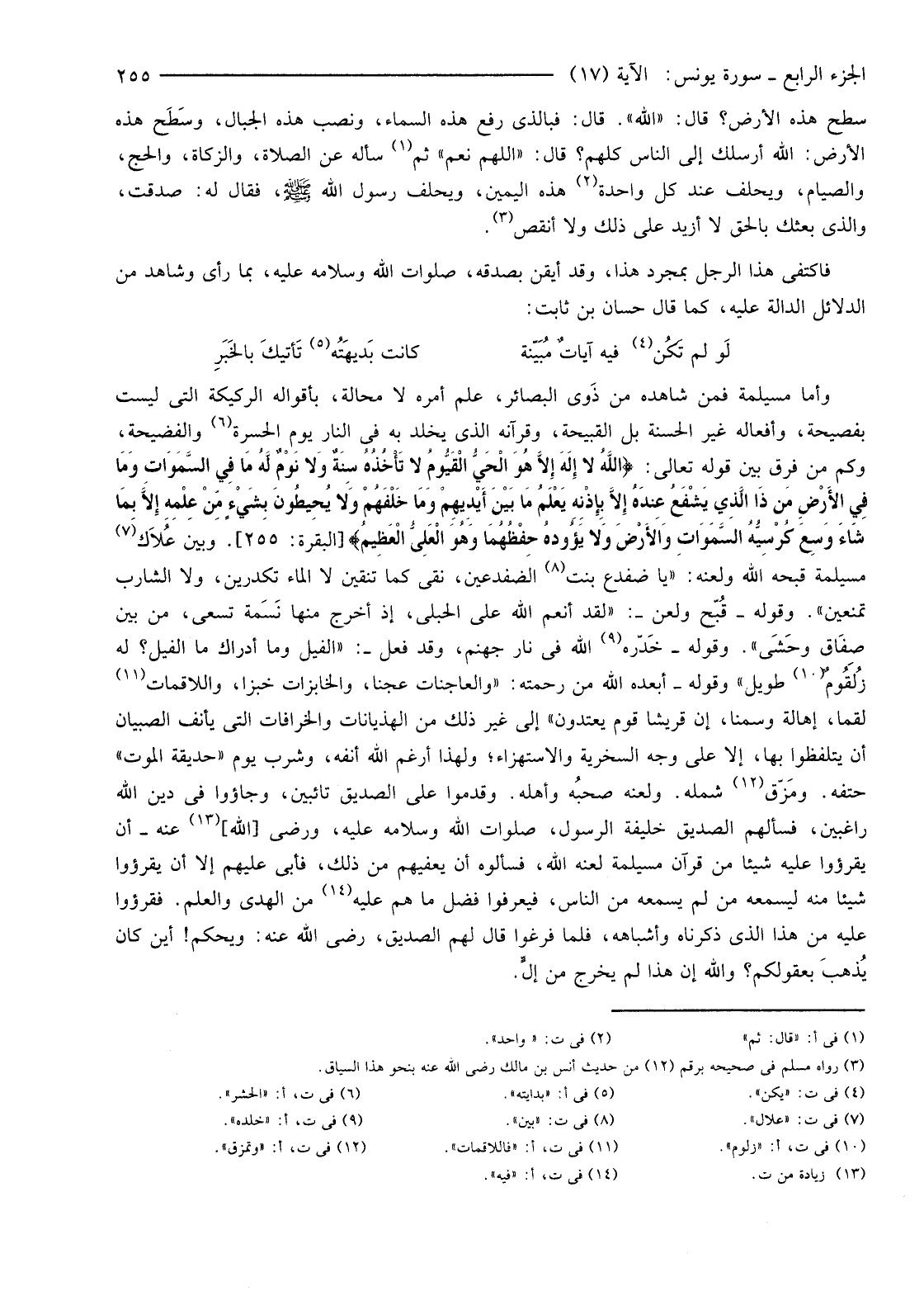 (3) رواه مسلم في صحيحه برقم (12) مِنْ حَدِيثِ أَنَسِ بْنِ مَالِكٍ رَضِيَ اللَّهُ عَنْهُ بنحو هذا السياق.