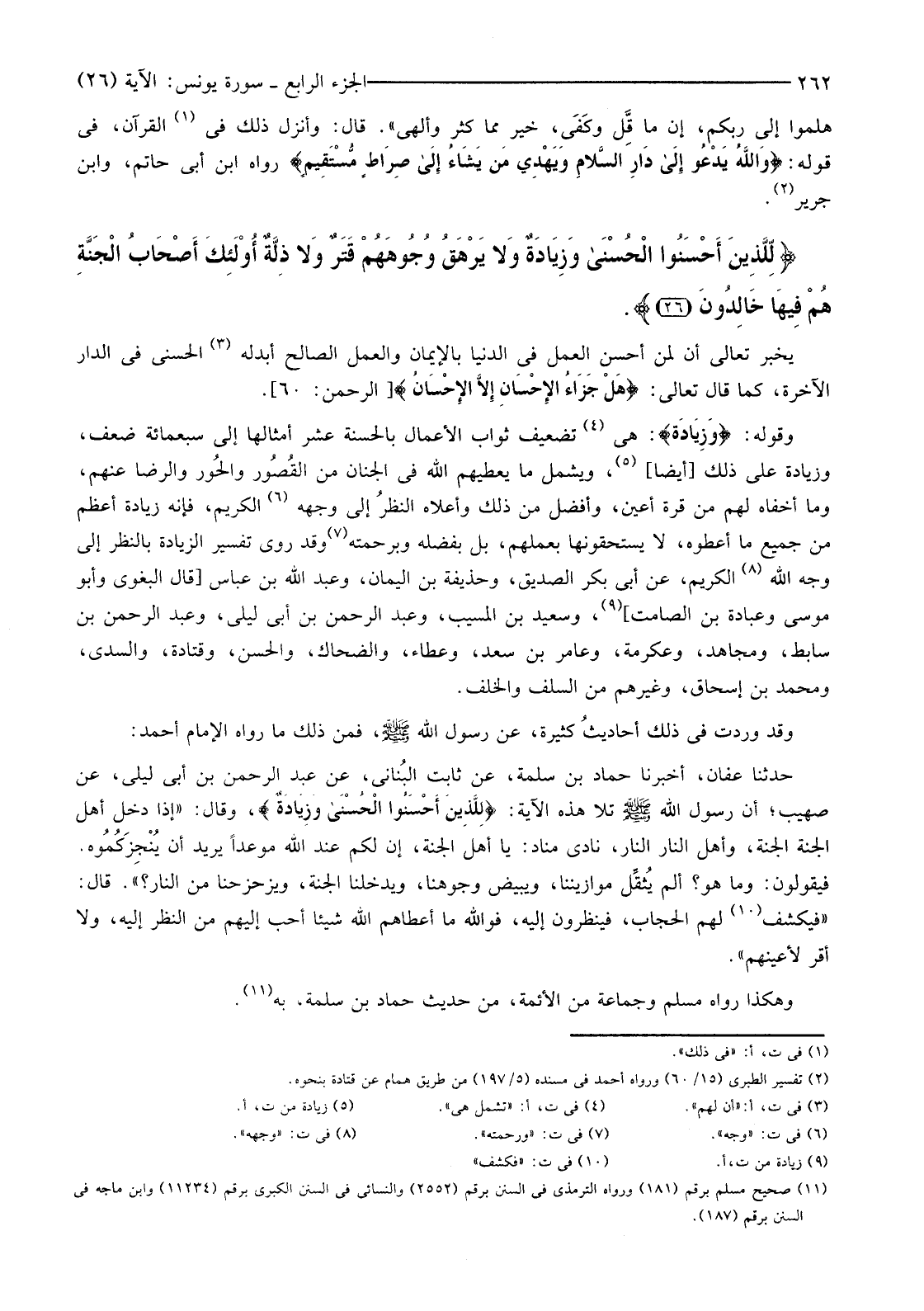 وَهَكَذَا رَوَاهُ مُسْلِمٌ وَجَمَاعَةٌ مِنَ الْأَئِمَّةِ، مِنْ حَدِيثِ حَمَّادِ بْنِ سَلَمَةَ، به. (9)