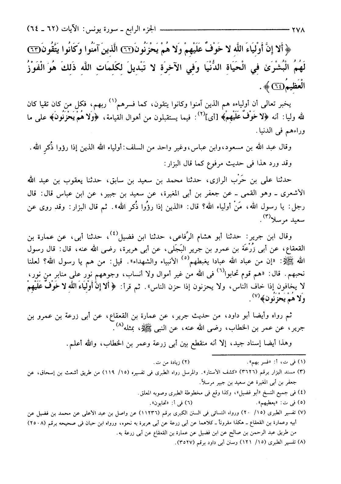 (7) تفسير الطبري (15/20) ورواه النسائي في السنن الكبرى برقم (11236) عن واصل بن عبد الأعلى عن محمد بن فضيل عن أبيه وعمارة بن القعقاع - هكذا مقرونا - كلاهما عن أبي زرعة عن أبي هريرة به نحوه، ورواه ابن حبان في صحيحه برقم (2508) من طريق عبد الرحمن بن صالح عن ابن فضيل عَنْ عُمَارَةَ بْنِ الْقَعْقَاعِ عَنْ أَبِي زُرْعَةَ به.