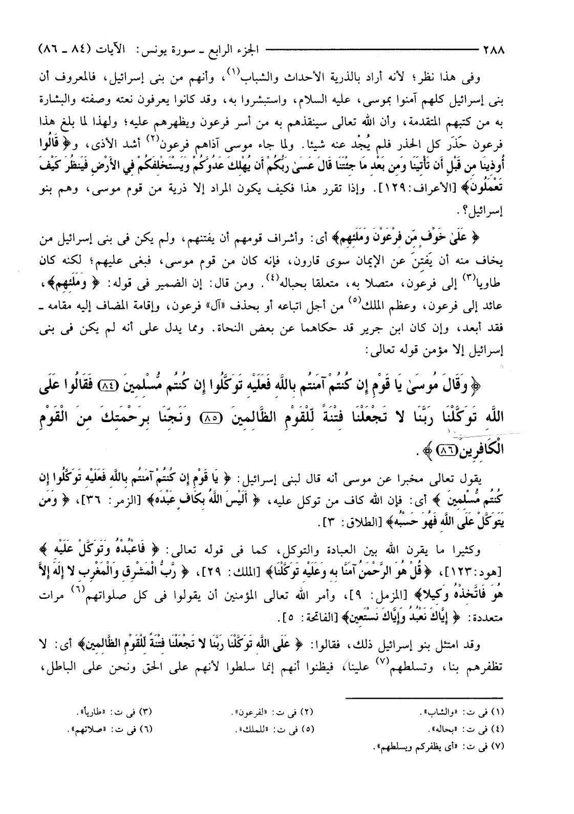 {وَقَالَ مُوسَى يَا قَوْمِ إِنْ كُنْتُمْ آمَنْتُمْ بِاللَّهِ فَعَلَيْهِ تَوَكَّلُوا إِنْ كُنْتُمْ مُسْلِمِينَ (84) فَقَالُوا عَلَى اللَّهِ تَوَكَّلْنَا رَبَّنَا لَا تَجْعَلْنَا فِتْنَةً لِلْقَوْمِ الظَّالِمِينَ (85) وَنَجِّنَا بِرَحْمَتِكَ مِنَ الْقَوْمِ الْكَافِرِينَ (86) }