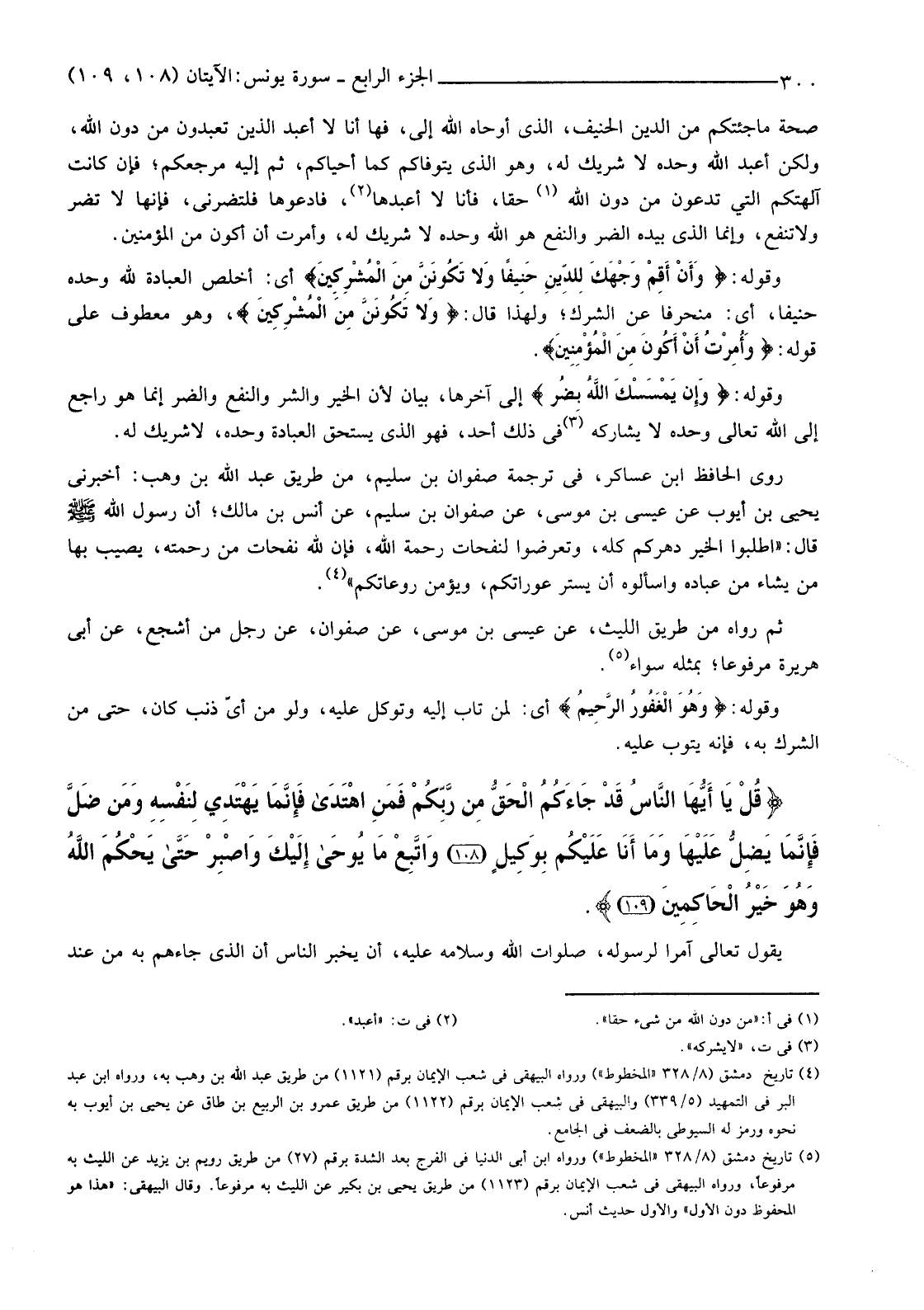 {قُلْ يَا أَيُّهَا النَّاسُ قَدْ جَاءَكُمُ الْحَقُّ مِنْ رَبِّكُمْ فَمَنِ اهْتَدَى فَإِنَّمَا يَهْتَدِي لِنَفْسِهِ وَمَنْ ضَلَّ فَإِنَّمَا يَضِلُّ عَلَيْهَا وَمَا أَنَا عَلَيْكُمْ بِوَكِيلٍ (108) وَاتَّبِعْ مَا يُوحَى إِلَيْكَ وَاصْبِرْ حَتَّى يَحْكُمَ اللَّهُ وَهُوَ خَيْرُ الْحَاكِمِينَ (109) }