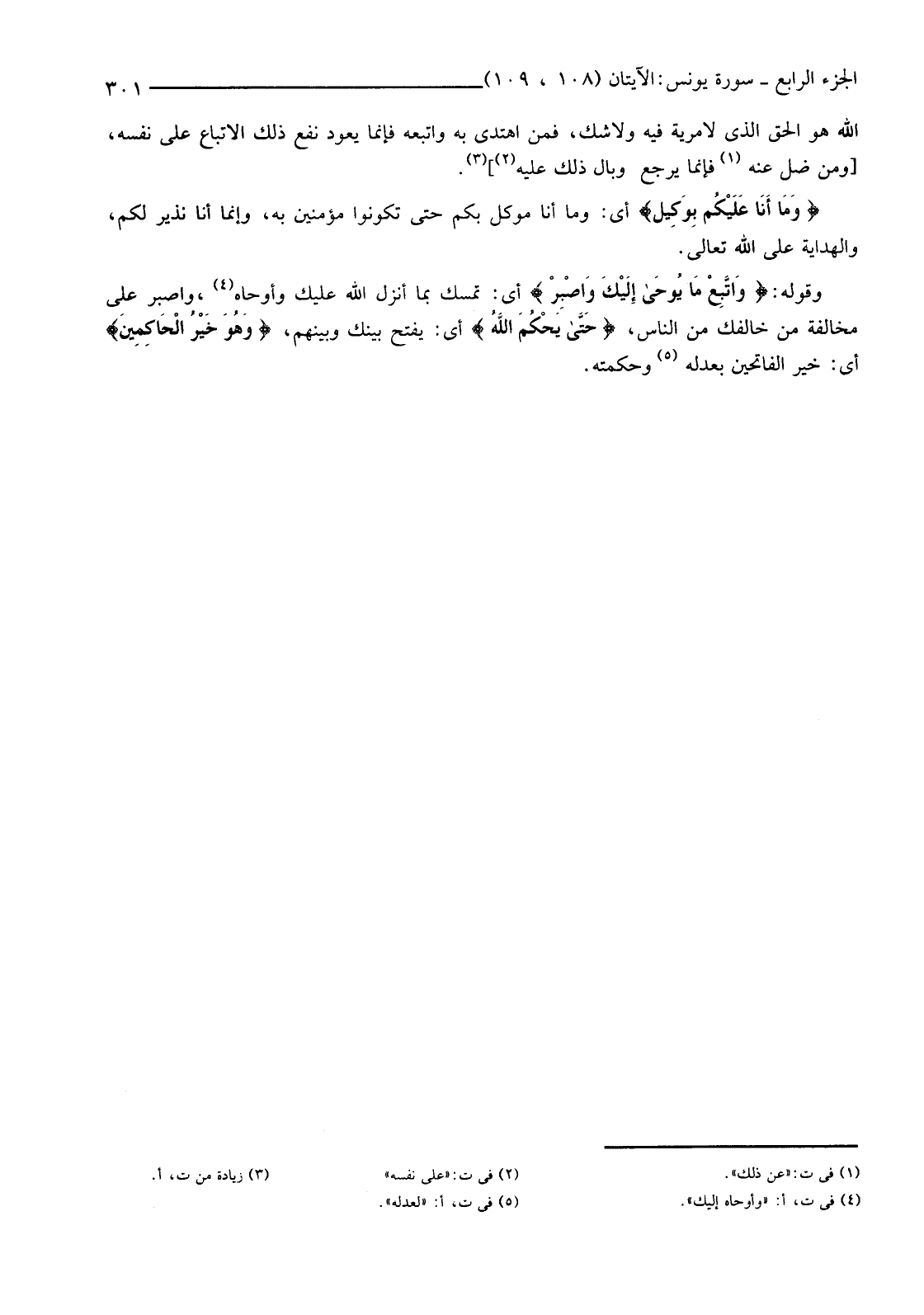 وَقَوْلُهُ: {وَاتَّبِعْ مَا يُوحَى إِلَيْكَ وَاصْبِرْ} أَيْ: تَمَسَّكَ بِمَا أَنْزَلَ اللَّهُ عَلَيْكَ وَأَوْحَاهُ (4) وَاصْبِرْ عَلَى مُخَالَفَةِ مَنْ خَالَفَكَ مِنَ النَّاسِ، {حَتَّى يَحْكُمَ اللَّهُ} أَيْ: يَفْتَحَ بَيْنَكَ وَبَيْنَهُمْ، {وَهُوَ خَيْرُ الْحَاكِمِينَ} أَيْ: خَيْرُ الْفَاتِحِينَ بِعَدْلِهِ (5) وَحِكْمَتِهِ.